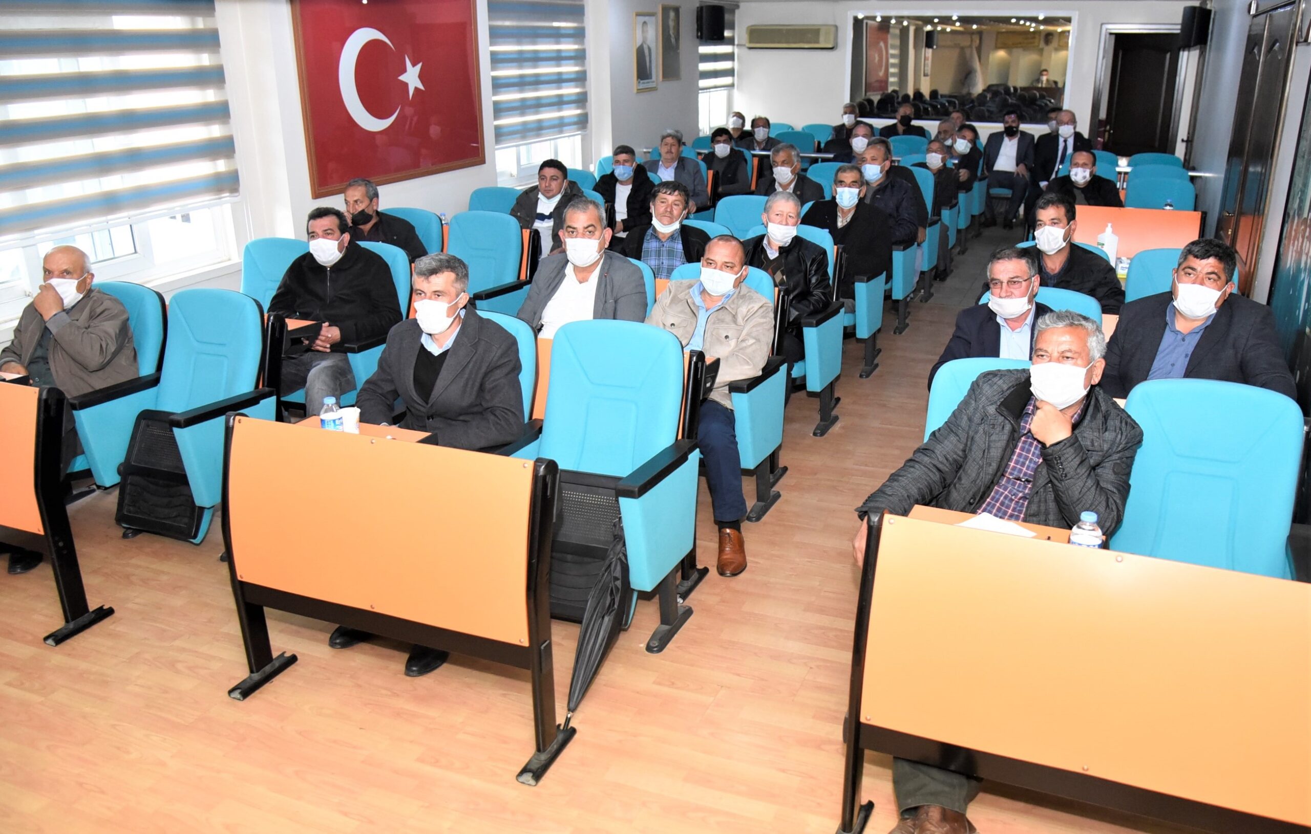 Ar-Ge ve Projelerden Sorumlu Başkan Yardımcısı Fatih Men ve Kırsal Hizmetler Müdürü Sinan Taylan Berk’in hazır bulunduğu istişare toplantısında mahalle muhtarlarına, üreticilerin kalkınmasına ve gelirlerinin artmasına yönelik çalışmalarla ilgili bilgiler verildi.