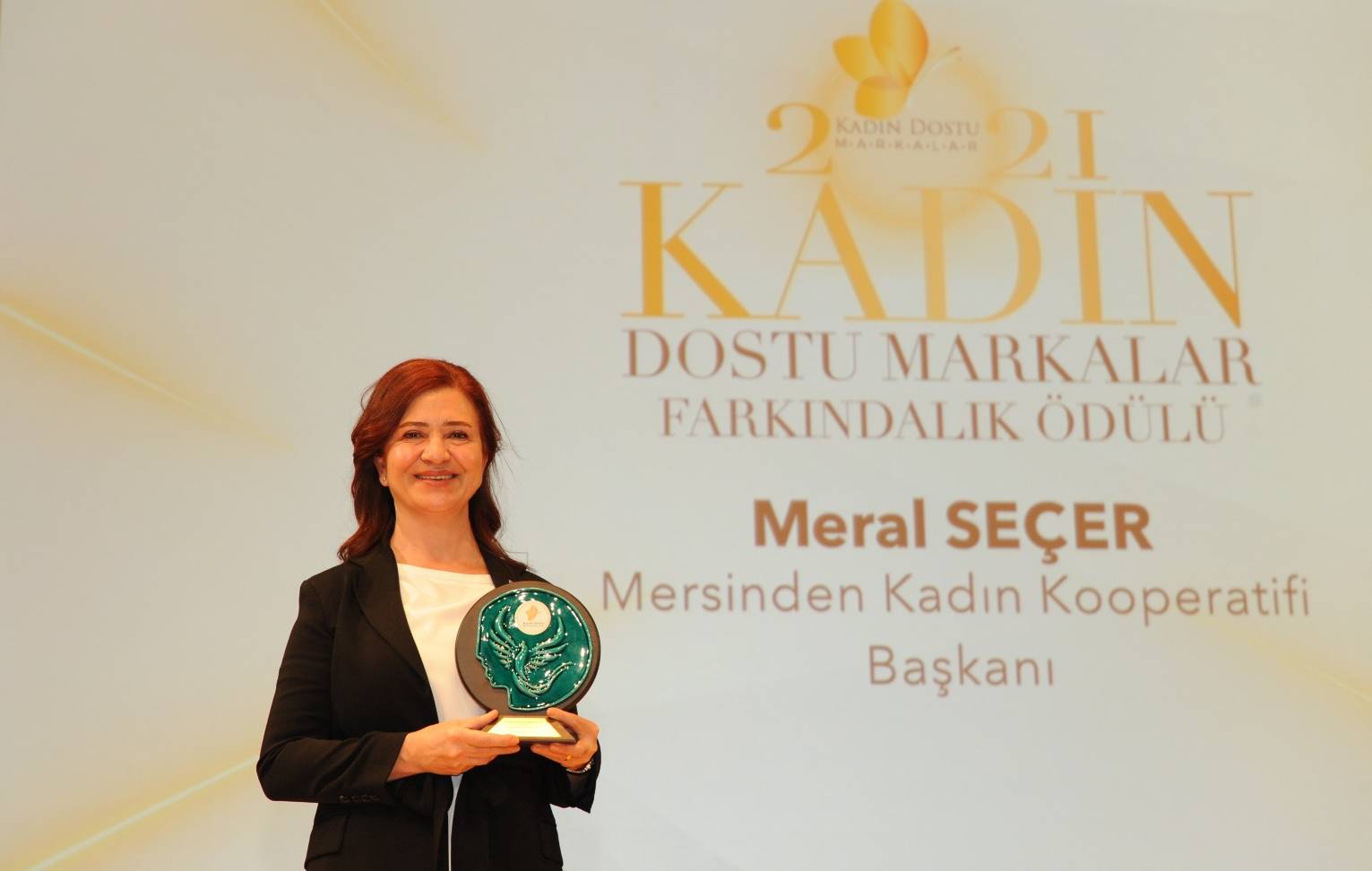 Mersin Büyükşehir Belediyesi’nin destekleriyle kurulan ve her geçen gün daha çok kadına ulaşan Mersinden Kadın Kooperatifi, iki ödül birden aldı. Kooperatif, Kadın Dostu Markalar Platformu tarafından 8 Mart Dünya Kadınlar Günü’nde düzenlenen ‘Kadın Dostu Markalar Özel Ödülleri’nde 2 alanda ödüle layık görüldü. Ödülleri Mersinden Kadın Kooperatifi Başkanı Meral Seçer aldı.