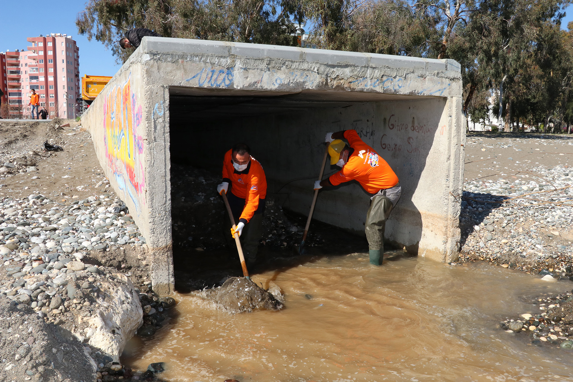 Mersin Büyükşehir Belediyesi Çevre Koruma ve Kontrol Dairesi’ne bağlı yer altı ekipleri, kent genelindeki 862 menfezde yürüttüğü temizlik ve ilaçlama çalışmalarıyla hem larva oluşumunun önüne geçiyor hem atıkların menfezlerden denizlere karışmasını engelliyor hem de olası ani yağışlarda sel oluşumunun önüne geçiyor. Mersin genelinde biyosidal mücadele çalışmasının yapıldığı 160 bin 330 kaynak noktasının 862’si menfezlerden oluşuyor. Ekipler, neredeyse tüm gün ışığı görmeden bu menfezlerde temizlik ve ilaçlama çalışması yürütüyor.