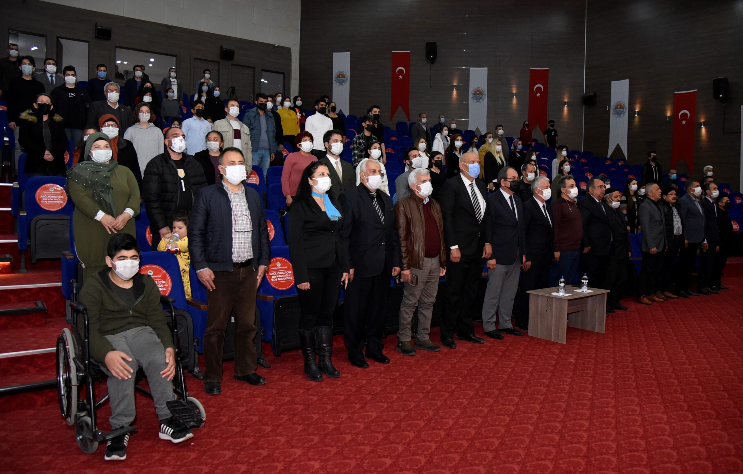 Ayakta alkışlanan müzik dinletisi ve tiyatro oyununun ardından program, hatıra fotoğraf çekimiyle son buldu.