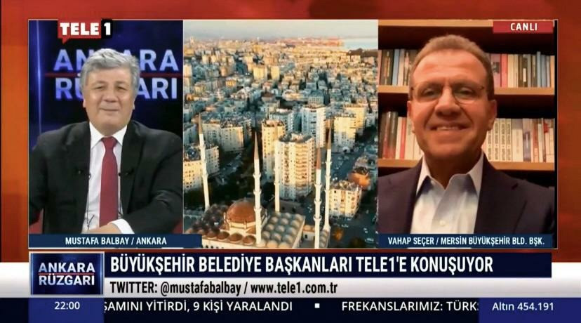 Gazeteci Mustafa Balbay, Tele1 TV’de canlı olarak yayınlanan ‘Ankara Rüzgarı’ programında 7 ilin CHP’li Büyükşehir Belediye Başkanı’nı ağırladı. Mersin Büyükşehir Belediye Başkanı Vahap Seçer’in de katıldığı programda, 31 Mart 2019 yerel seçimlerinin 2’nci yılında Büyükşehirlerde hayata geçirilen projeler ve pandemi sürecinde sunulan hizmetler konuşuldu. Başkan Seçer, 2 yıl gibi kısa bir sürede sosyal politikalar kapsamında hayata geçirilen projeler başta olmak üzere eğitim, ulaşım, kadın istihdamı konularında da yapılan çalışmaları anlattı.