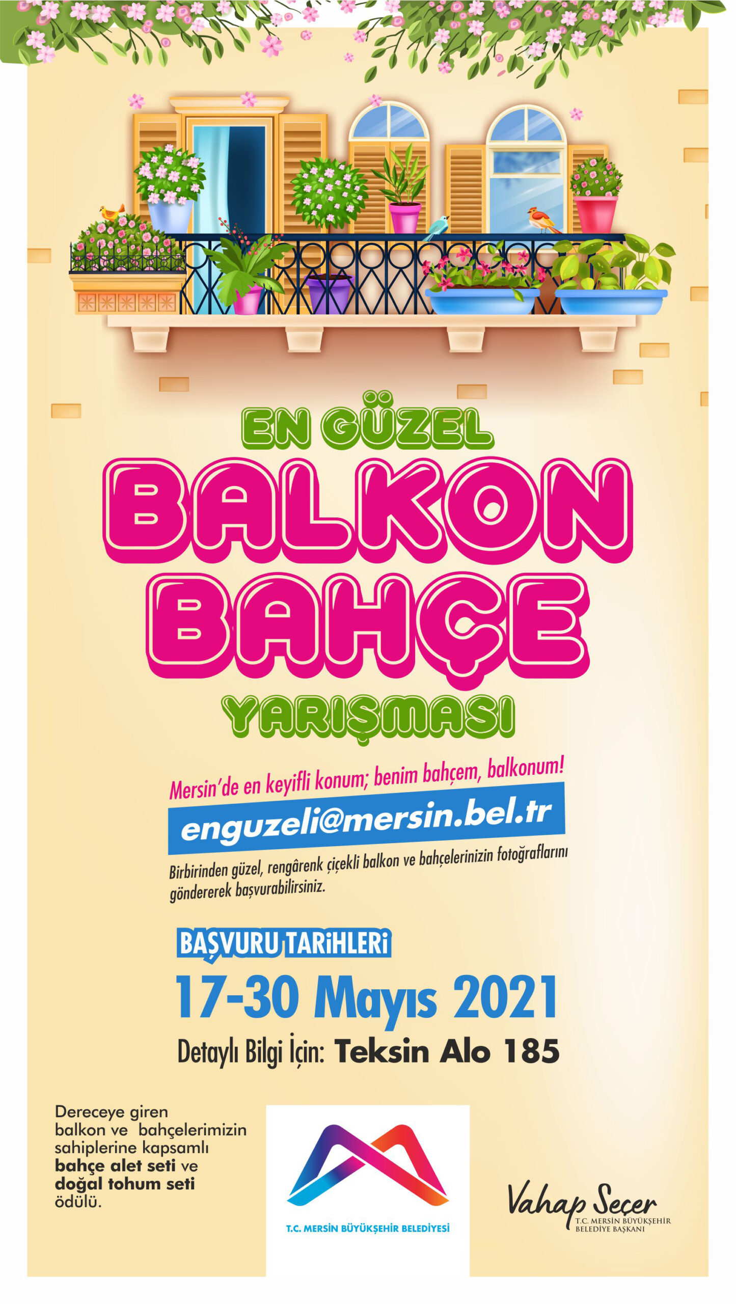 Büyükşehir Belediyesi, ‘Mersin’de en keyifli konum; benim bahçem, balkonum!’ sloganıyla ‘En Güzel Bahçe/Balkon Yarışması’ düzenliyor. Yarışmayla çevre bilincini ve çevre sevgisini artırmak, vatandaşların sosyal ilişkilerinin taze tutulmasını sağlamak, halkın çevre düzenleme ve kent peyzajına yönelik ilgisini teşvik etmek ve Mersin’de yeşil dokunun artırılması amaçlanıyor.
