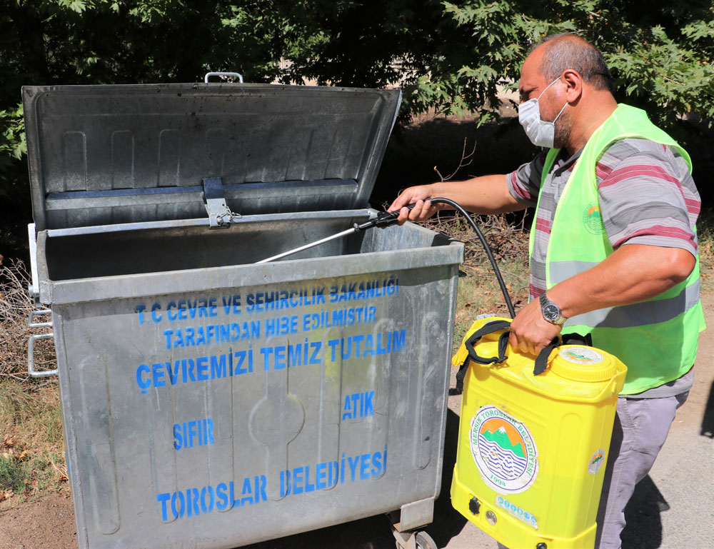 Toroslar Belediye Başkanı Atsız Afşın Yılmaz, ilçe genelinde temizlik çalışmalarını titiz ve özverili bir şekilde gerçekleştirdiklerini kaydederek; “Toroslar Belediyesi olarak ilçemizde salgının en kısa sürede bertaraf edilmesi için tüm imkanlarımızı seferber ediyoruz. Pandemi bitene kadar tedbirlere sıkı sıkıya sarılmaya devam edeceğiz. Hemşehrilerimizden isteğimiz çöp konteynerlerine poşetsiz çöp atmamaları ve maskelerini kullandıktan sonra gelişigüzel yerlere bırakmamalarıdır. Daha sağlıklı günlere yeniden kavuşmak için elimizden gelen özeni göstermeye devam edelim” diye konuştu.