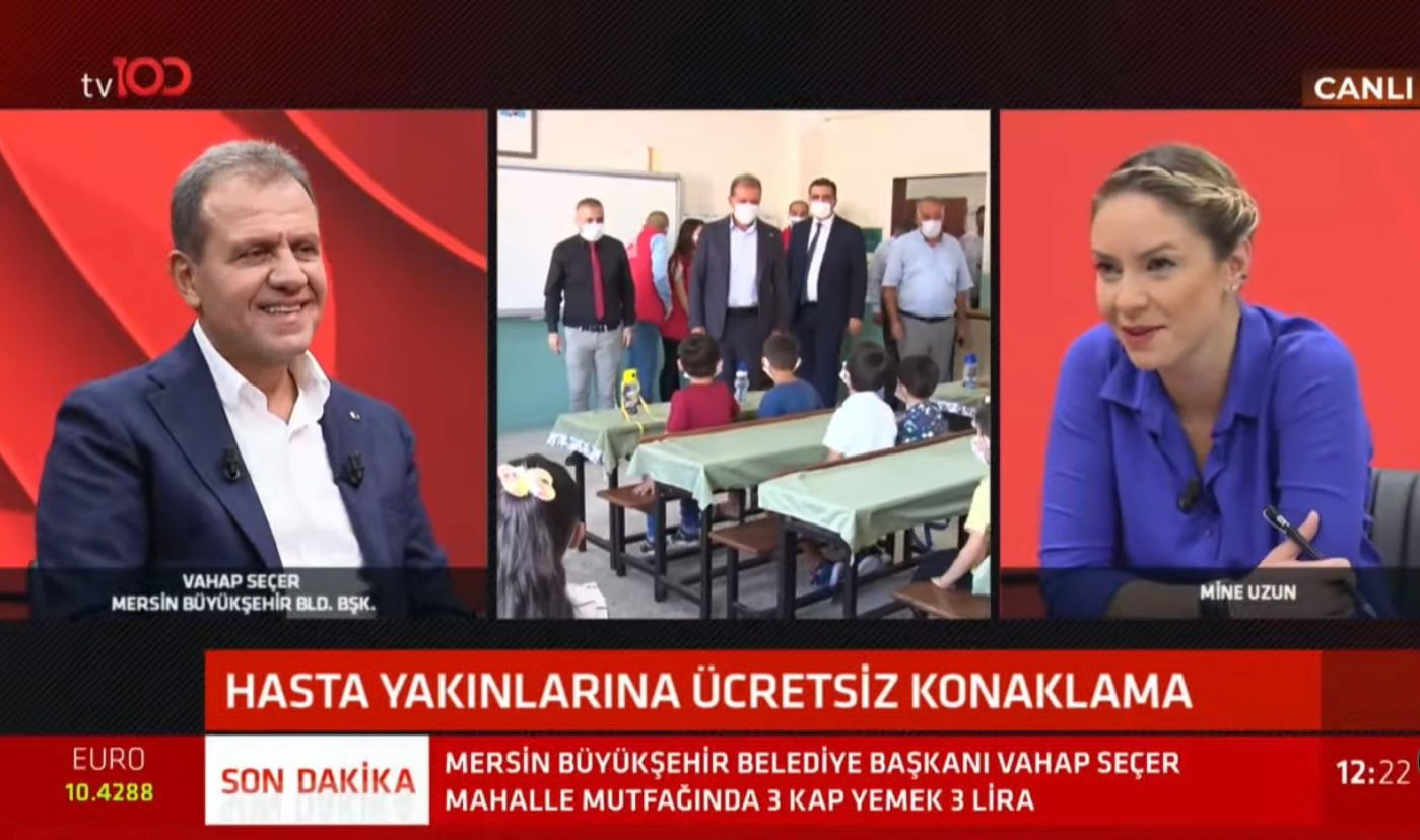 Mersin Büyükşehir Belediye Başkanı Vahap Seçer, TV100 ekranlarında yayınlanan Mine Uzun ile ‘Siyaset Alanı’ programının canlı yayın konuğu oldu. Mersin Büyükşehir Belediye Meclisi’nden borçlanma alamadıklarını vurgulayan Başkan Seçer, gelecek Meclis toplantısına 2022 yılının bütçesini getireceklerini bildirdi. Seçer, metro projesinin Mersin’i marka kent haline getireceğini söyledi.