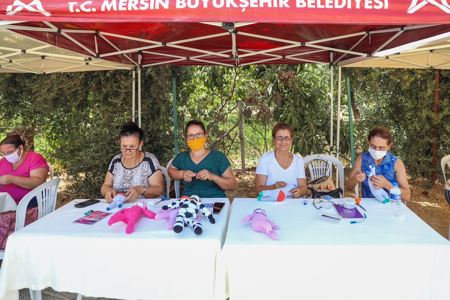 Projenin üçüncü noktası olan Tarsus’a bağlı Yeşil Mahalle’de kurulan üretim stantlarında da kadınlar bir araya gelerek üretimlere başladı. Kadınları; Mersinden Kadın Kooperatifi Başkanı ve Büyükşehir’in İlk Gönüllü Üyesi Meral Seçer’in yanı sıra Kadın ve Aile Hizmetleri Dairesi Başkanı Şerife Hasoğlu Dokucu, Tarsus-Çamlıyayla Şube Müdürü Soner Yetkin, CHP Tarsus İlçe Başkanı Ozan Varal, CHP Tarsus İlçe Kadın Kolları Başkanı Belda Boroğlu ve Yeşil Mahalle Muhtarı Emrah Kara ziyaret etti.