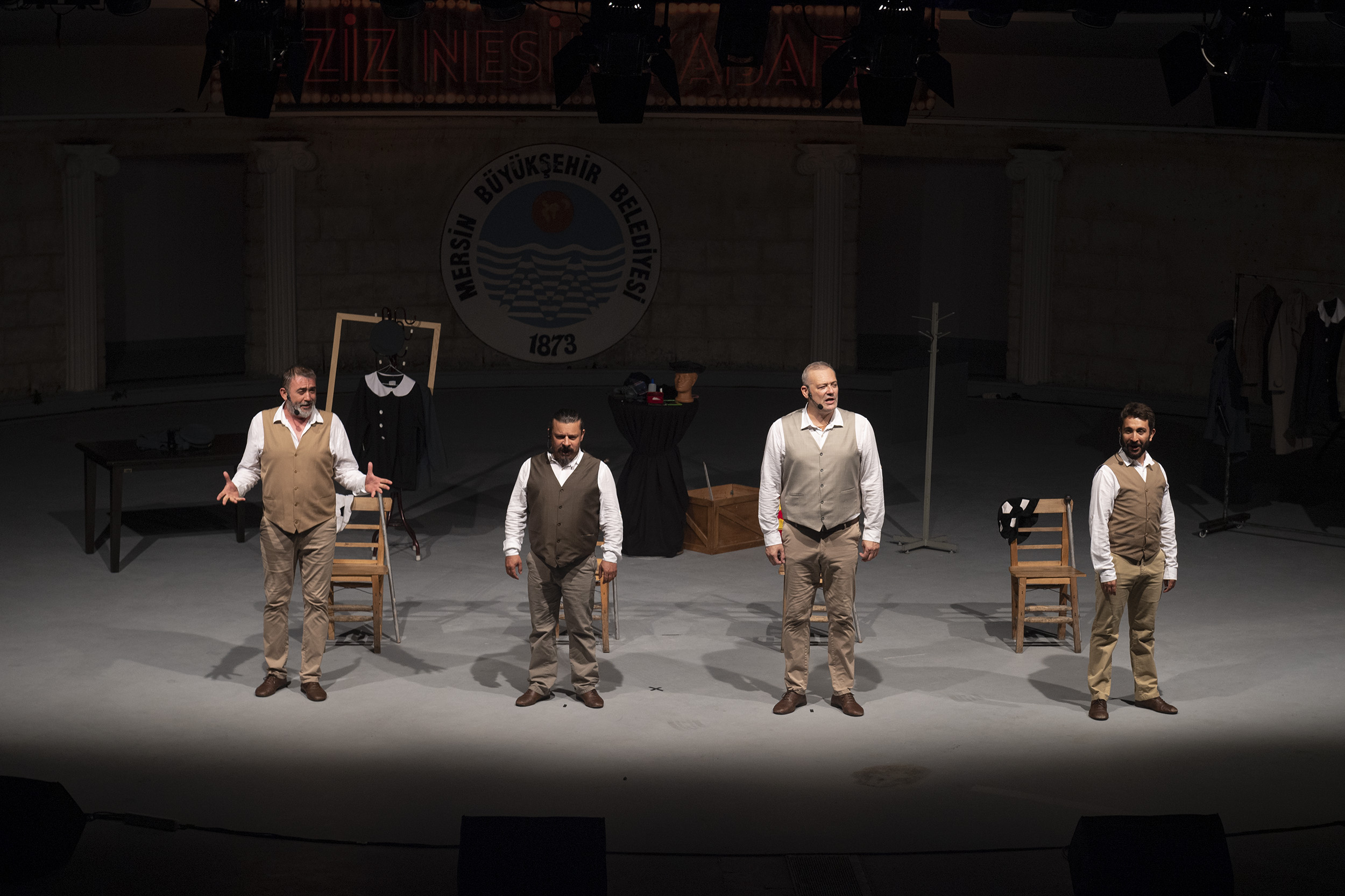 Oyunun Levent Üzümcü Tiyatrosu ile İzmir Halk Tiyatrosu’nun ortak çalışması olduğunu anımsatan Üzümcü, “Elimizden gelenin en iyisini yapmaya, Aziz Nesin’in ismini yaşatmaya çalışıyoruz” diye konuştu. Üzümcü, Mersin Büyükşehir Belediyesi’ne kendilerine sağladığı desteklerden dolayı teşekkür etti.