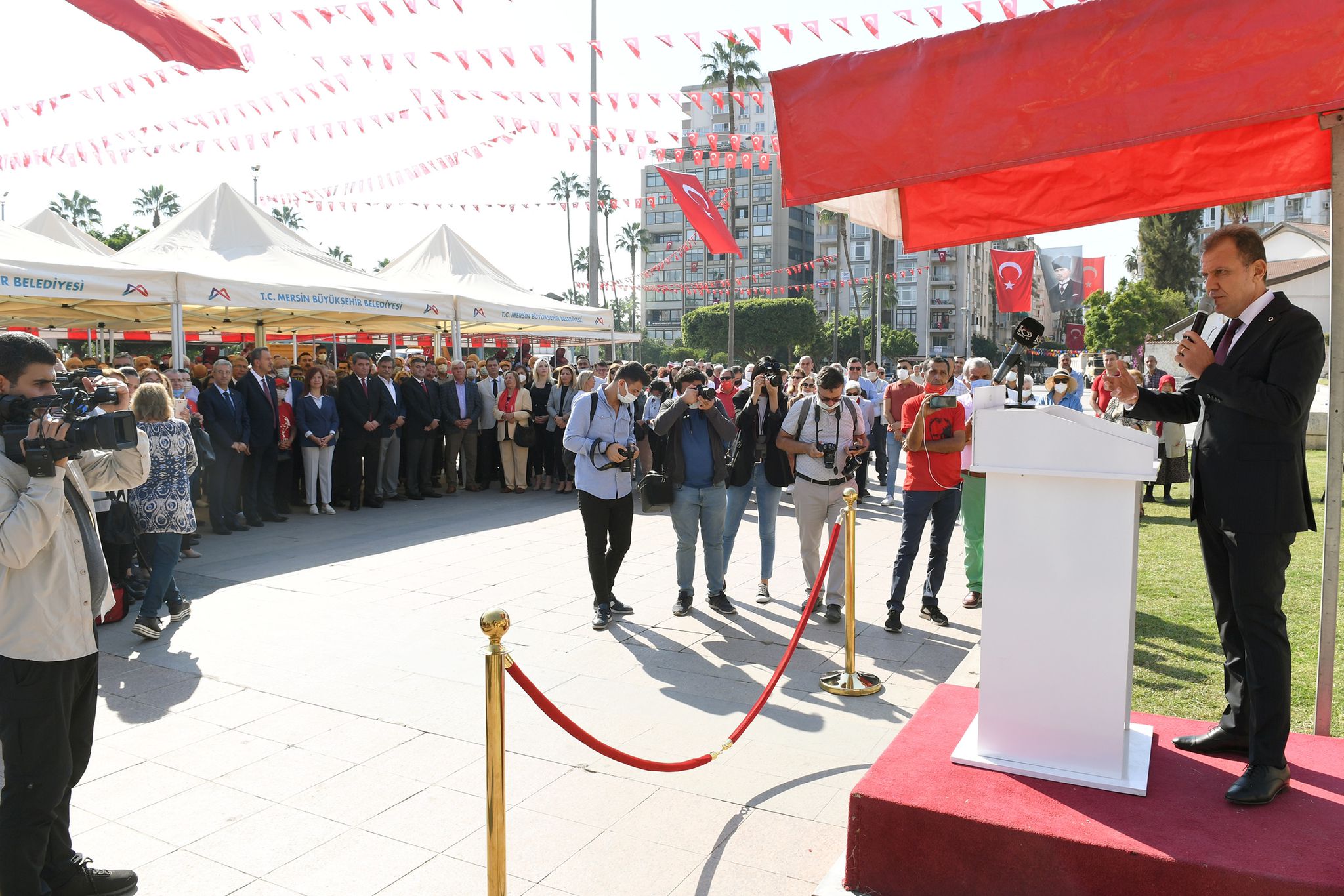 Mersin’de yaşayan 2 milyon 300 bin Türkiye Cumhuriyeti kimliği taşıyan ya da “kandan, savaştan, kaostan gelmiş bu bölgede sığınmış garibin, gurebanın” belediye başkanı olduğunu belirten Başkan Seçer, “Kentte yaşan bütün siyasi partilere mensup vatandaşlarımın belediye başkanıyım. Atatürk de bu Cumhuriyeti onun için kurdu. Eğer Cumhuriyet’in içerisini dolduramazsanız hiçbir kıymeti harbiyesi yok” diye konuştu.