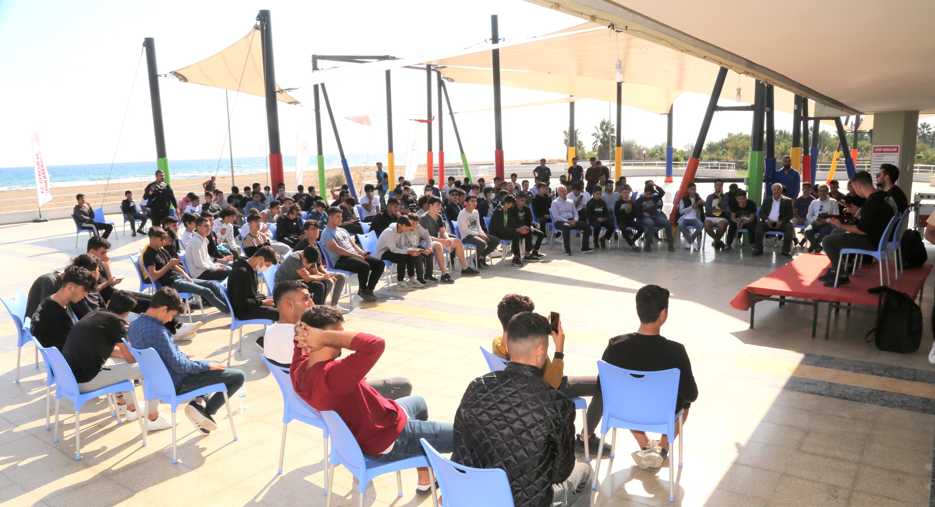 Akdeniz Belediye Başkanı Mustafa Gültak; ilçede yaşayan yaklaşık 300 başarılı öğrenciyi kampla ödüllendirdi. Gençleri Silifke Kapızlı’da bulunan kampta ziyaret eden Başkan Gültak; “İmkan bulamayıp da birçok şeyden yararlanamayan gençlerimizin dünyaya bakışlarının değişmesi için bu etkinlikleri önemli buluyoruz” dedi. Akdeniz Belediyesi Kültür ve Sosyal İşler Müdürlüğü ilçe sınırları içerisinde yaşayan yaklaşık 300 başarılı öğrenciyi Silifke Kapızlı’da bulunan gençlik kampında ağırladı. 29 Ekim Cumhuriyet Bayramı dolayısıyla keyifli konserlerle doyasıya eğlenen gençlerin, 3 gün süren etkinlik ile sosyal, kültürel ve sportif anlamda da kendilerini geliştirebilmelerine olanak tanınıyor. Göreve geldiği günden bu yana sosyal sorumluluk projeleri ile önemli işlere imza atan Başkan Mustafa Gültak da gençleri bulundukları kampta ziyaret ederek onların eğlencelerine ortak oldu. Başkan Gültak gençlerle şarkılar söyleyip sohbet etti Gençlerle şarkılar söyleyip, sohbet eden Başkan Mustafa Gültak burada yaptığı konuşmada “300’e yakın öğrencimizi kamplarla buluşturduk. Spor Bakanlığımıza bağlı eğitmen arkadaşlarımız ve belediyemizin ilgili birimlerine bağlı ekiplerimiz buradalar. Gençlerimize yönelik programlar yapıyorlar. Hem hep beraber Cumhuriyet Bayramımızı kutlamış olduk hem de onların eğitim ve gelecekleri konusunda söyleşiler yaptık” dedi. “Barışı ve sevgiyi burada buluyorlar” Burada öğrencilere kendi kaderleri ve yaşantıları ile ilgili kararlar almalarının gerekli olduğunu hatırlattıklarını ifade eden Başkan Gültak; “Çünkü daha önce bu kamplara katılan gençler içinden farklı ülkelere giden, farklı üniversiteler kazanıp daha sonra hayata atılan birçok gencimizin hikayesi oluştu. Bu kampların en güzel yanlarından birisi de budur. Her türlü din ve mezhepten olan kardeşlerimiz bir araya gelip barışı ve sevgiyi burada buluyorlar” diye konuştu. “Kadınlara, gençlere ve ailelere çok önem veriyoruz” Başkan Gültak; “Evlatlarımız buranın imkanlarını görerek de ileriye dönük kendi kendilerine düşünme fırsatı buluyorlar. Sonrasında tıp fakültesini, öğretmenliği, işletme bölümlerini kazanan öğrencilerimiz var. Biz Akdeniz Belediyesi olarak kadınlara, gençlere ve ailelere çok önem veriyoruz. Bu Silifke kampları da bu yüzden değerli. İmkan bulamayıp da birçok şeyden yararlanamayan gençlerimizin de bunlardan faydalanarak dünyaya bakışlarının değişmesini ve gözlerinin açılmasını istiyoruz. Hayatları ile ilgili en doğru kararları versinler; daha çok okusunlar; hem kendileri hem de ülkeleri ile ilgili en doğru kararları versinler istiyoruz” ifadelerini kullandı.