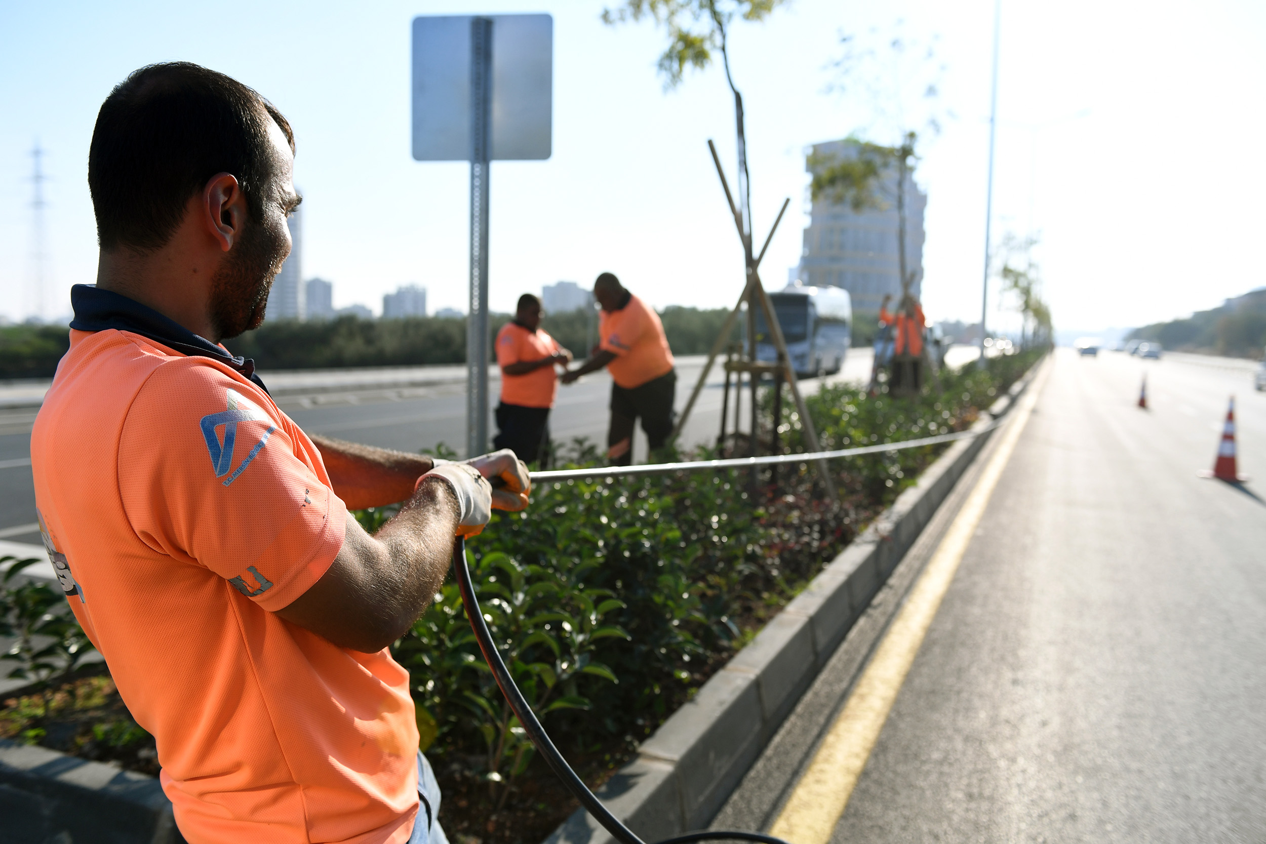 Sulama sistemi ve toprak tesviye çalışmalarını da yürüten ekiplerin çalışma alanlarından birisi 17. Cadde oldu. Yeni açılan 4. Çevre Yolu içerisinde yer alan 17. Cadde’nin refüjüne daha önce damlama sulama sistemi hatları döşeyen ekipler, ardından çalı dikimini gerçekleştirdi. Ekipler şimdi de yüzey laterallerini sererek, yaklaşık 600 metrelik kısımda damlama sisteminin bağlantılarını yapıyor.