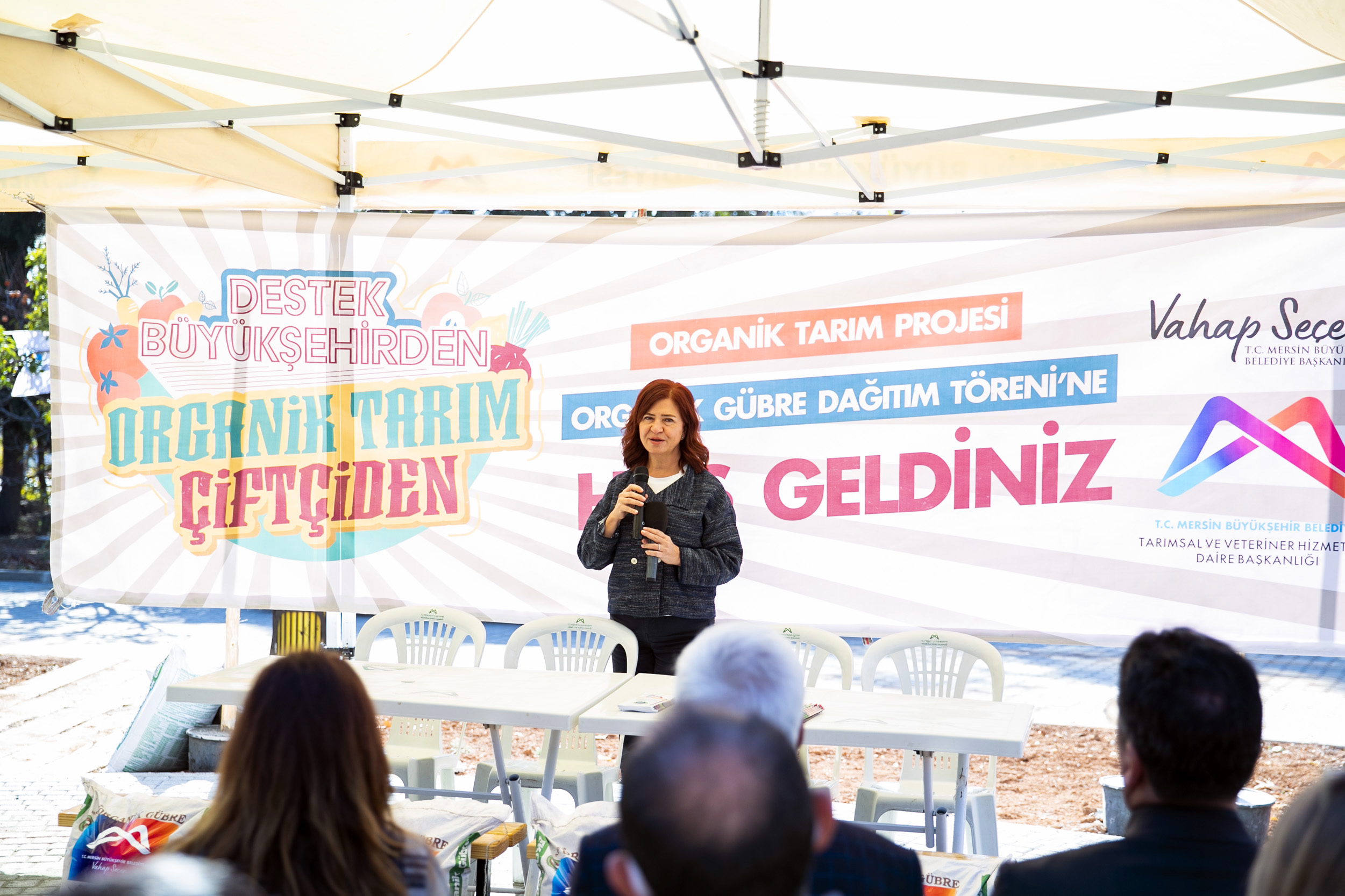 Mersin Büyükşehir Belediyesi Tarımsal ve Veteriner Hizmetleri Dairesi tarafından 2021 yılında başlatılan “Organik Tarım Projesi” kapsamında Toroslar ve Tarsus ilçelerinde eğitim sürecini tamamlayan 100 üreticiye toplam 25 bin kilogram organik gübre dağıtıldı. Toroslar ilçesindeki dağıtım törenine Mersinden Kadın Kooperatifi Başkanı Meral Seçer de katıldı.