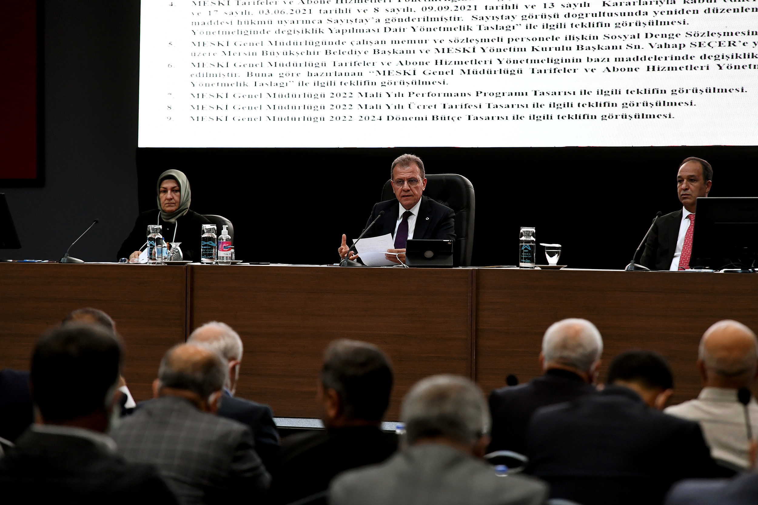 Genel Kurul’da aralarında Tarifeler ve Abone Hizmetleri Yönetmeliği’nde yapılacak değişikliklerin de yer aldığı 9 maddenin 8’i komisyonlara sevk edildi. MESKİ’de çalışan memur ve sözleşmeli personele ilişkin Sosyal Denge Sözleşmesi’ni yapma yetkisinin Başkan Vahap Seçer’e verilmesini kapsayan madde ise oy birliğiyle kabul edildi.