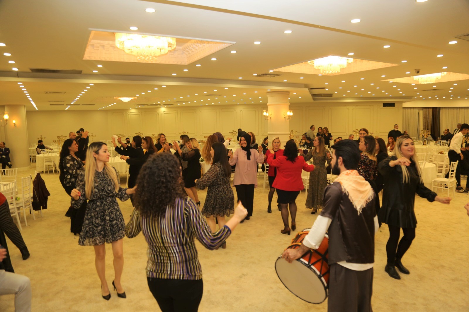 Sıra gecesiyle renklenen yemekte eğitimciler, canlı müzik eşliğinde gönüllerince eğlendi. Başkan Yılmaz da öğretmenlerle birlikte halay çekti, kutlamalara ortak oldu ve tüm eğitim camiasının Öğretmenler Günü’nü kutladı.