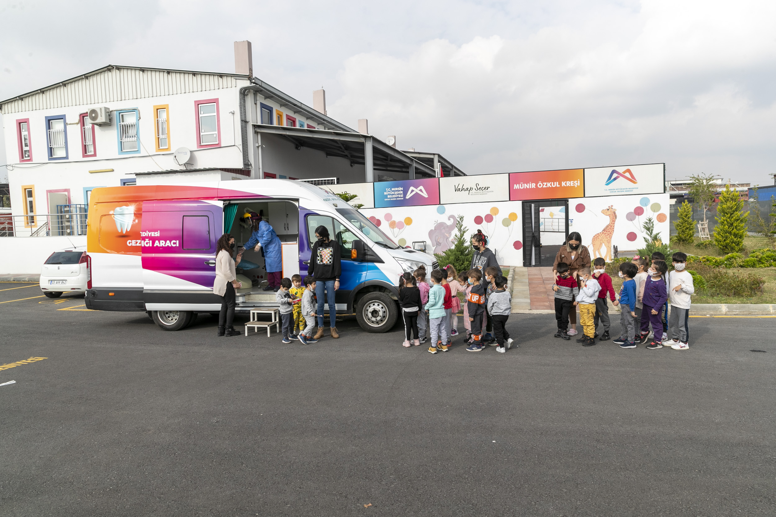 Mersin Büyükşehir Belediyesi Engelliler ve Sağlık Hizmetleri Dairesi ekipleri, Ağız ve Diş Sağlığı Haftası kapsamında Münir Özkul Kreşi’nde eğitim gören miniklere ağız ve diş sağlığı kontrolü gerçekleştirdi. Kadın ve Aile Hizmetleri Dairesi’ne bağlı Münir Özkul Kreşi’nde eğitim alan 3-6 yaş arasındaki miniklerin ağız ve diş sağlığı kontrolleri Ağız ve Diş Sağlığı Aracı’nda yapıldı.