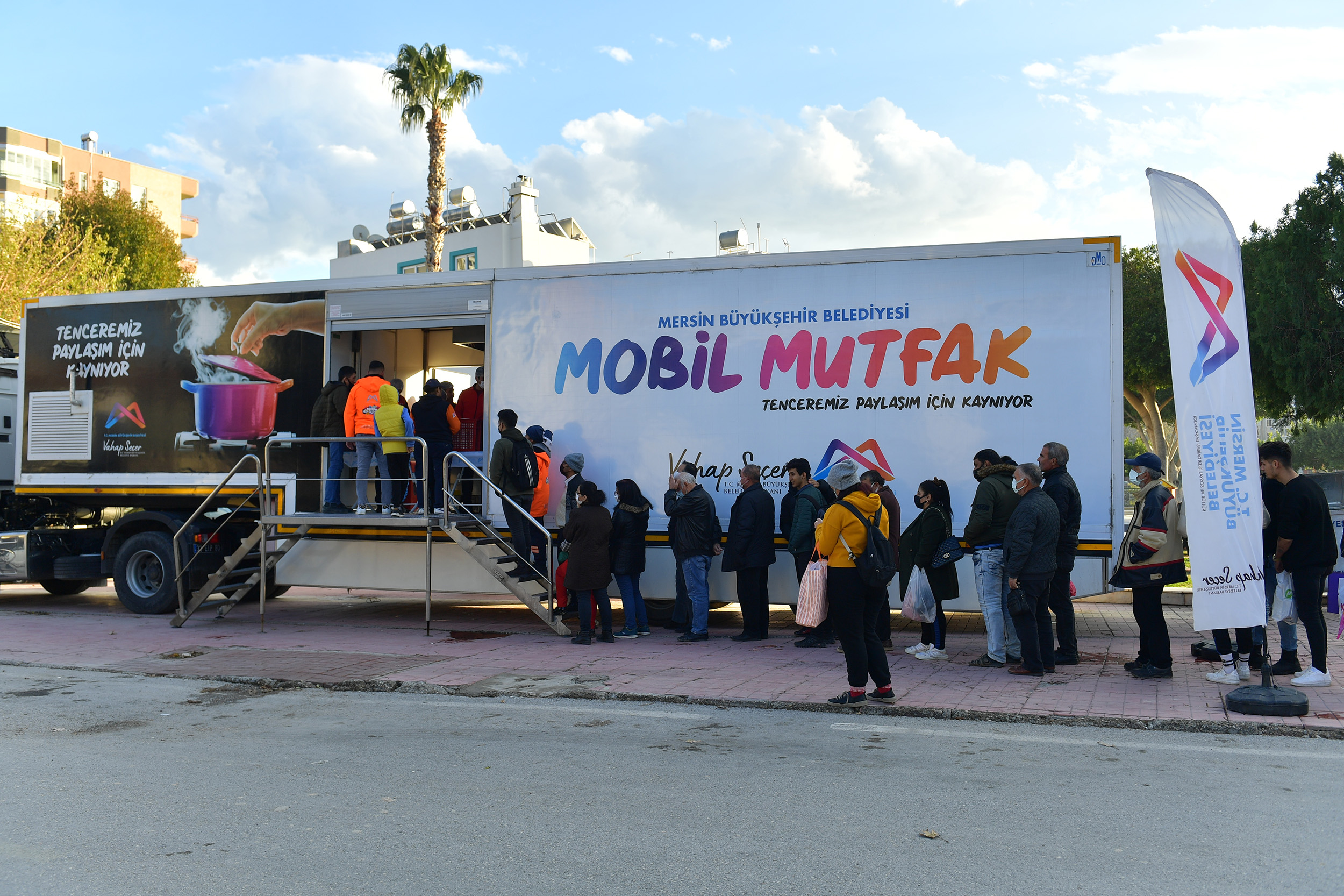 Mersin Büyükşehir Belediyesi, ekonomik sıkıntıların yaşandığı bu zor günlerde yurttaşlara en azami şekilde hizmet sunmaya devam ediyor. Büyükşehir Belediyesi Sosyal Hizmetler Dairesi, dezavantajlı bölgelerdeki 30 noktada hizmet sunan Mahalle Mutfakları’nın yanı sıra “Mobil Mutfak Tırı” ile ilçelerdeki dar gelirli yurttaşlara da 3 çeşit yemeği 3 TL’ye ulaştırılmaya başladı.