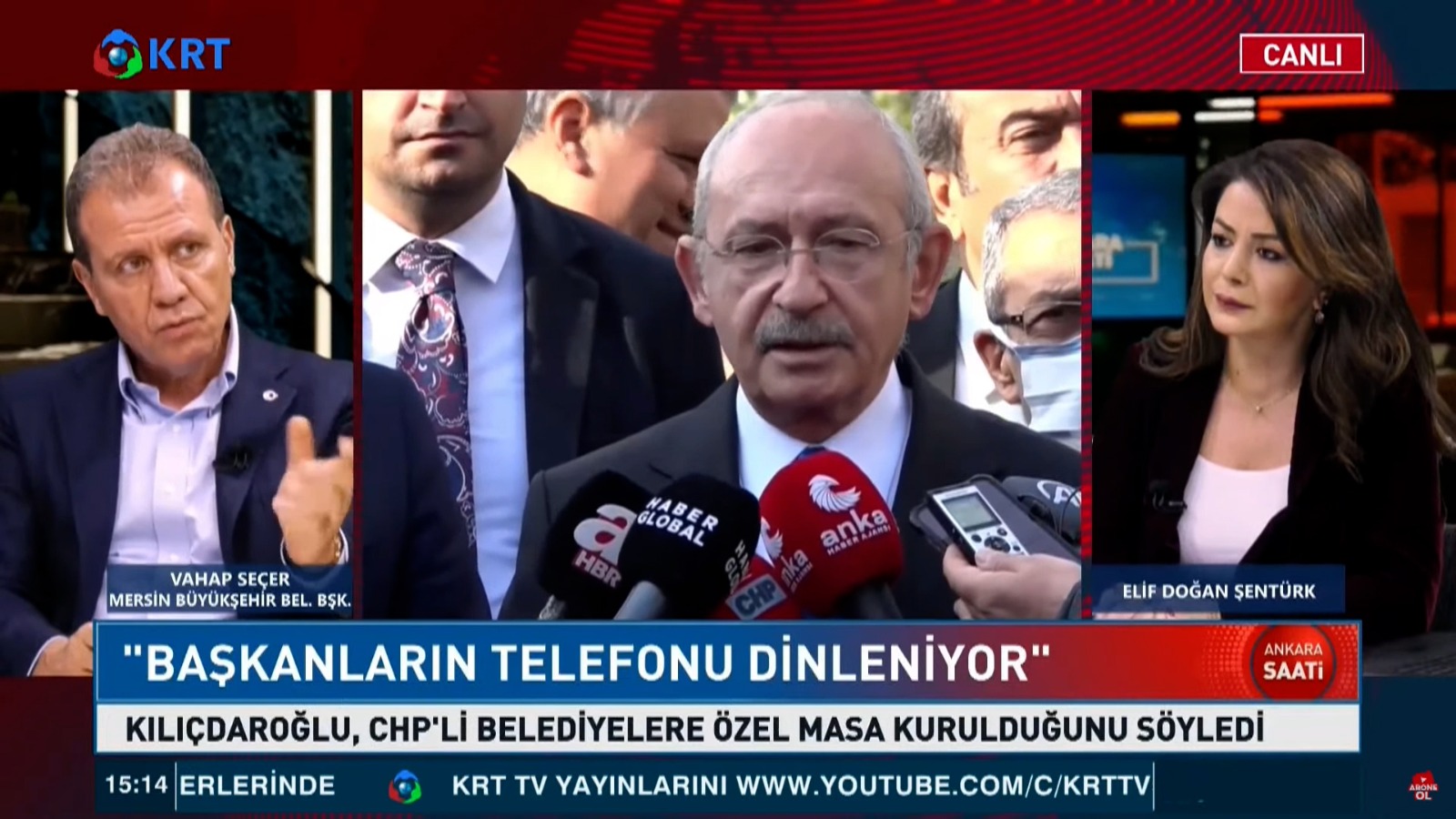 Mersin Büyükşehir Belediye Başkanı Vahap Seçer, KRT TV’de yayınlanan ‘Ankara Saati’ programının canlı yayın konuğu oldu. Seçer, Elif Doğan Şentürk’ün gündeme ilişkin sorularını yanıtladı. 3 Ocak Mersin’in kurtuluşunun 100. yılında CHP Genel Başkanı Kemal Kılıçdaroğlu ve İYİ Parti Genel Başkanı Meral Akşener’in katılımıyla Mersin Metrosu’nun temelini atacaklarını söyleyen Başkan Seçer, “Mersin’de raylı sistemler dönemi başlayacak” dedi.