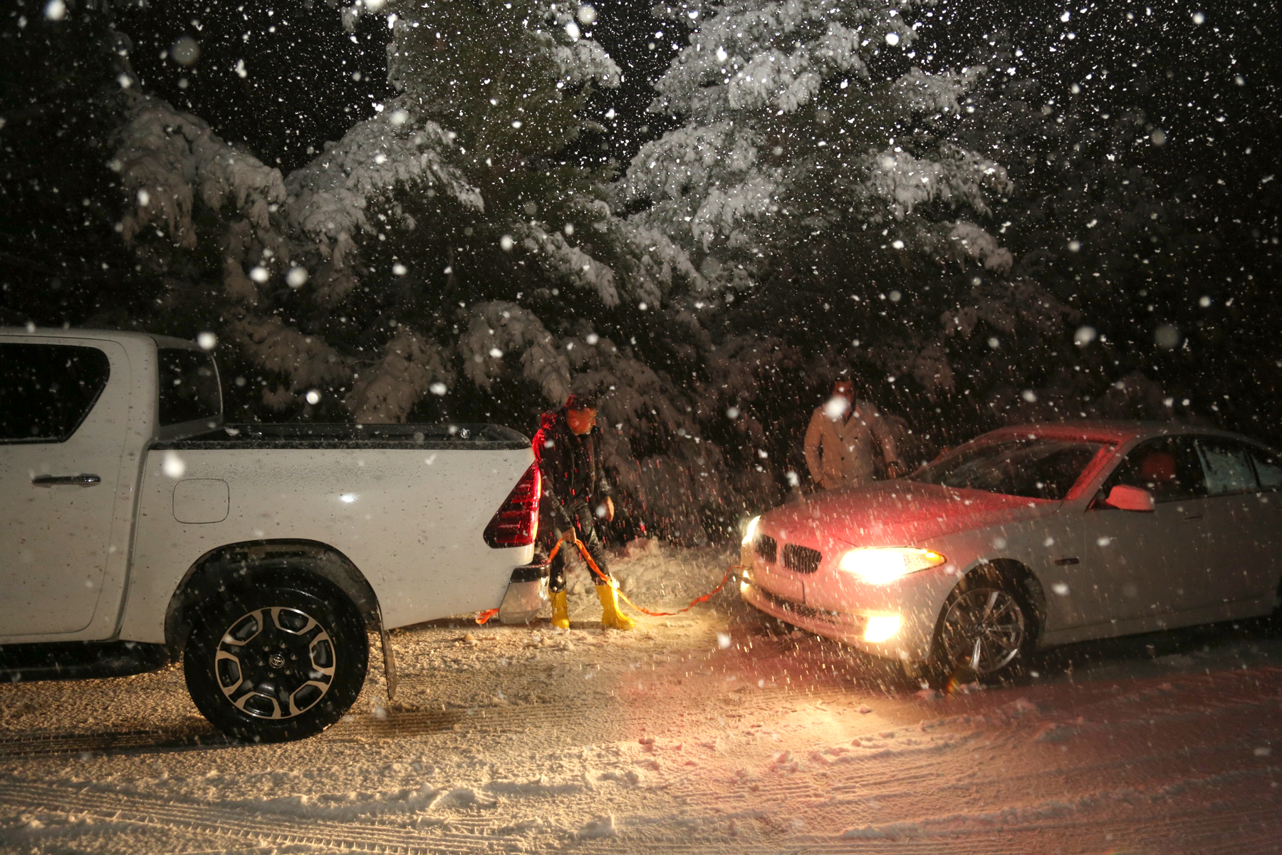 Karla Mücadele Ekipleri bir yandan iş makineleriyle yol açma çalışmalarını sürdürürken, Acil Durum Afet Ekipleri de gece saatlerinde yolda mahsur kalan vatandaşlara anında ulaştı.