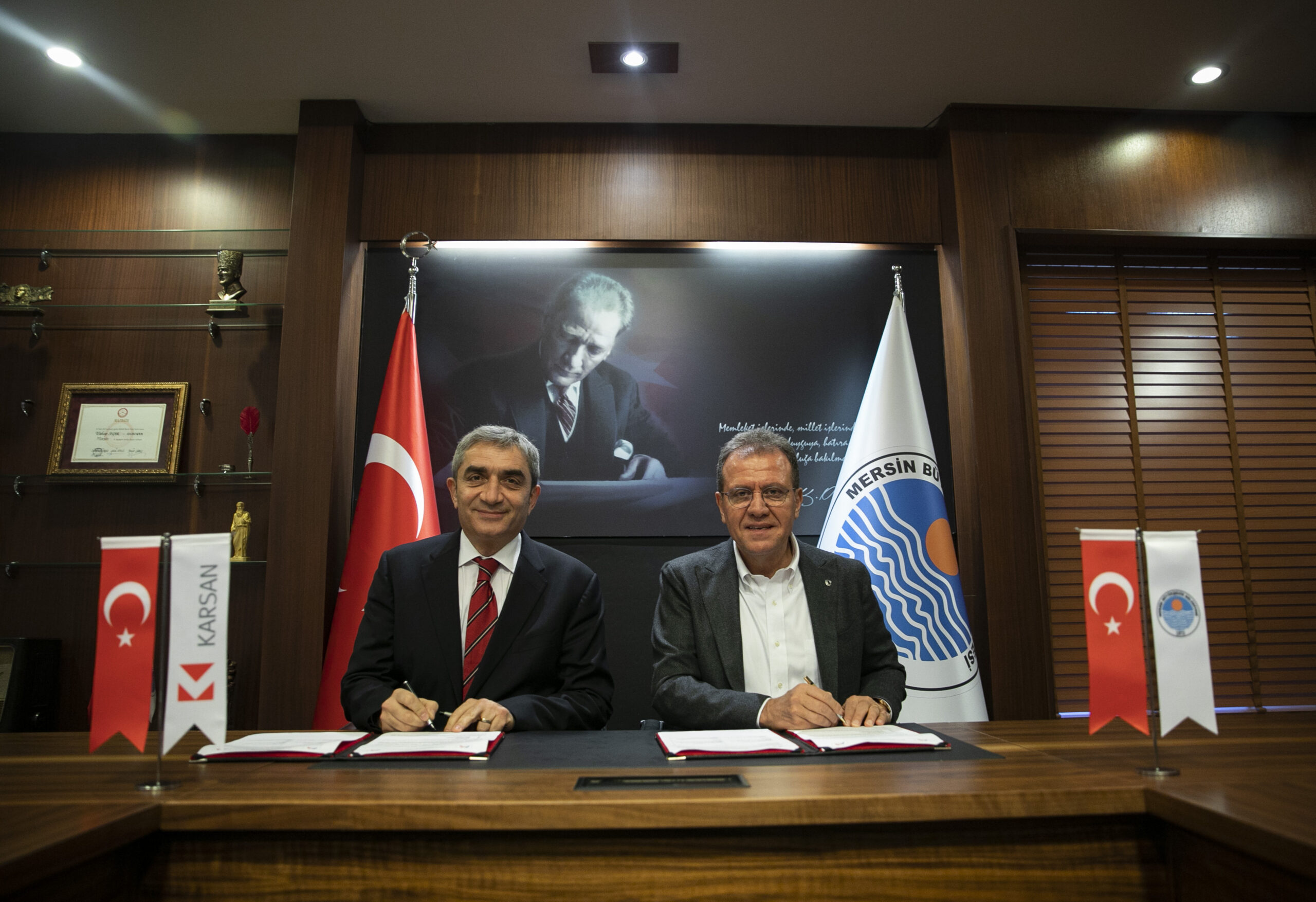 KARSAN Otomotiv Sanayi ve Ticaret A. Ş. CEO’su Okan Baş da imza töreninde yaptığı açıklamada, hem filoyu gençleştirmesi hem de en yeni teknolojilere sahip olması dolayısıyla Mersin’e çok iyi ürünler kazandırdıklarını belirterek,“Biz hem gururlanıyoruz hem de bizim için önemli bir sorumluluk bu. Çünkü bu kadar büyük bir filo son yıllarda Mersin’den başladı. Önemli bir referans bizim için. Buradaki sizin memnuniyetinizle Türkiye’nin diğer şehirlerine de ulaşmayı hedefliyoruz. Bu anlamda araçlarımıza çok da iyi bakacağız. Hep beraber Mersinlilere layık olmaya çalışacağız. Geçen seneden bugüne tüm Limonlarınızı KARSAN olarak tercih ettiğiniz için teşekkür etmek istiyorum. Herkese, Mersinlilere hayırlı olsun demek istiyorum” diye konuştu.