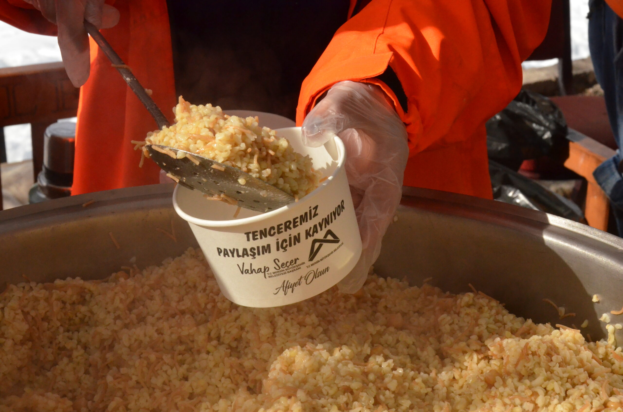 Tarsus’ta yer yer kar kalınlığının 1 metrenin üstüne çıktığı Ardıçlı Mahallesi’nde Büyükşehir Belediyesi ekipleri hem karla mücadele çalışması hem de yemek dağıtımı gerçekleştirdi. Kadın ve Aile Hizmetleri Dairesi’ne bağlı Tarsus Gençlik Kampı’nda usta aşçılar tarafından hazırlanan kuru fasulye ve pilav vatandaşlara ikram edildi.