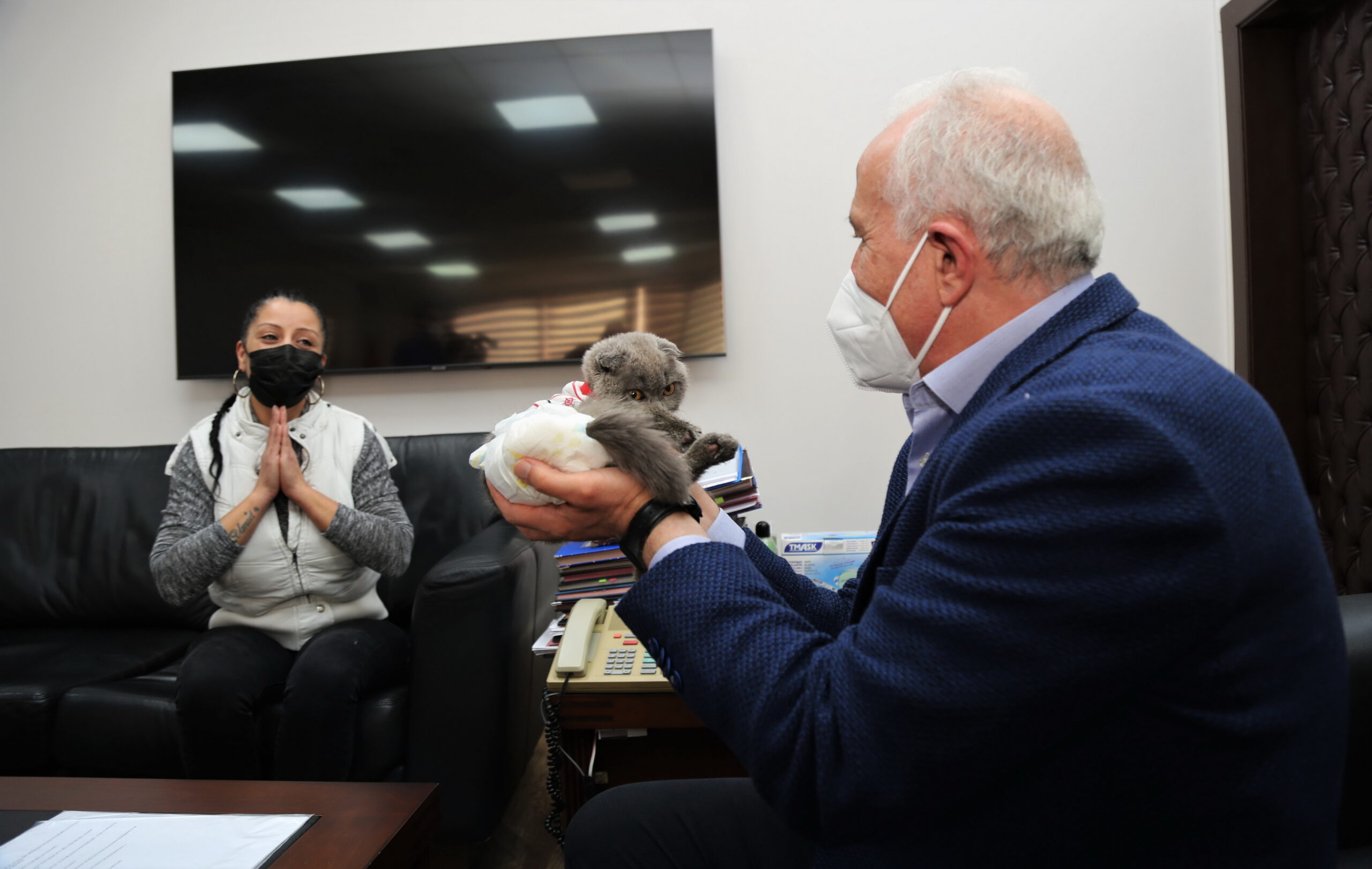 BAŞKAN GÜLTAK ENGELLİ KEDİYİ MİSAFİR ETTİ