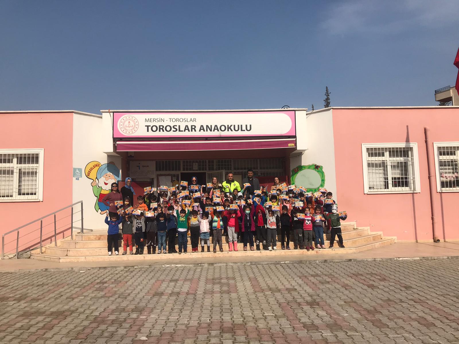 Toroslar Anaokulu öğrencilerine yönelik Trafik Denetleme Şube Müdürlüğü personeli tarafından eğitim düzenlendi. Düzenlenen eğitimde; Trafiğin Tanımı ve Unsurları İnsan Araç Yol ve Çevre Trafikte İnsanların Oynadığı Roller Araca İnme-Binme Kuralları Araç İçerisinde Uyulması Gereken Temel Kurallar Araç İçerisinde Doğru Oturma Şekilleri Emniyet Kemerinin Doğru Kullanımı Boyumuza Göre Doğru Koltuk Seçimi Çocuk Bağlama Sistemleri Okul Servis Aracına Binerken ve İnerken Uyulması Gereken Kurallar Okul Servis Aracında Uyulması Gereken Temel Kurallar Karayolunda Yaya Olarak Uyulması Gereken Kurallar Karşıdan Karşıya Güvenli Geçiş Yerleri Kaldırımda Yürüme Kuralları Gece Yolda Yürürken Yapılması Gerekenler Trafik Güvenliğinin Önemi Trafikte Temel Davranış Şekli Güvenli Oyun Alanları Güvenli Bisiklet, Kaykay ve Paten Kullanma Trafik ve Çevre Trafikte Saygı konularında görsel ve teorik bilgilendirmeler yapıldı ve konu ile ilgili sorular cevaplandı.