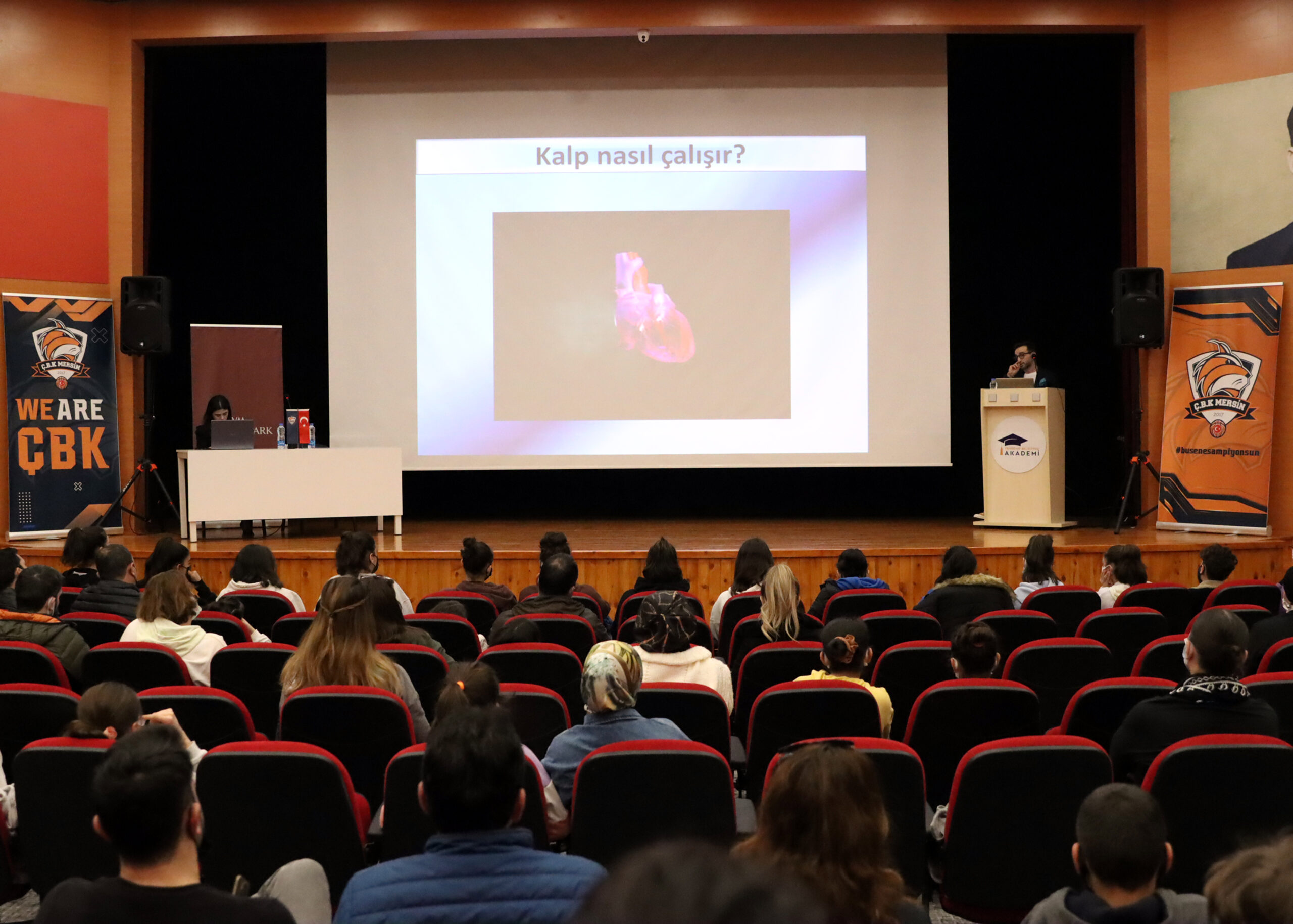 Yenişehir Belediyesi Akademi’deki seminerde, ÇBK’nın sağlık sponsoru olan MedicalPark Mersin Hastanesi’nde görevli Çocuk Kardiyolojisi Uzmanı Doç. Dr. Abdullah Özyurt ile Klinik Psikolog Nisa Nur Maraş konuşmacı olarak yer aldı. Doç. Dr. Özyurt, ‘Sporcu Çocuklarda Hayat Kurtaran Manevralar’, Klinik Psikolog Maraş ise ‘Çocuğum İçin Önce Ben’ başlıklı sunum gerçekleştirdi.