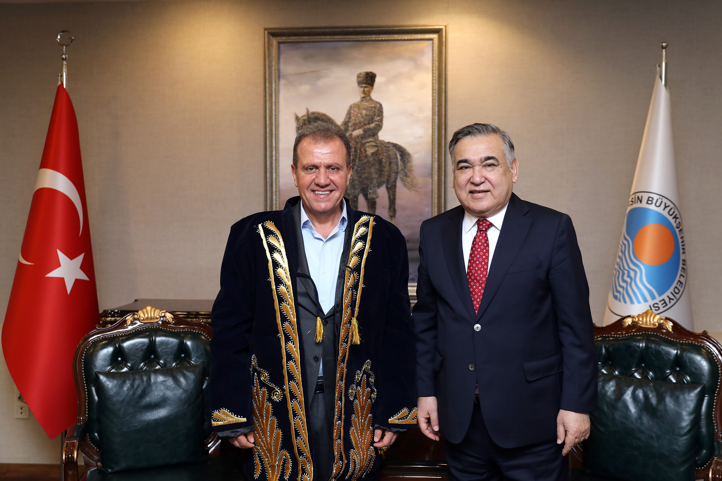 Mersin Büyükşehir Belediye Başkanı Vahap Seçer, Özbekistan Cumhuriyeti Ankara Büyükelçisi Alişer Azamhocayev, Eğitim ve Din Ateşesi Abdülmelik Tuyçibayev ile Büyükelçi İkinci Katibi Dilruh Teniraliyev’i makamında ağırladı. Mersin’in yatırımcılar için güvenli bir kent olduğunu vurgulayan Başkan Seçer, “Mersin hem yaşanabilecek hem yatırım yapılabilecek bir kent” dedi.
