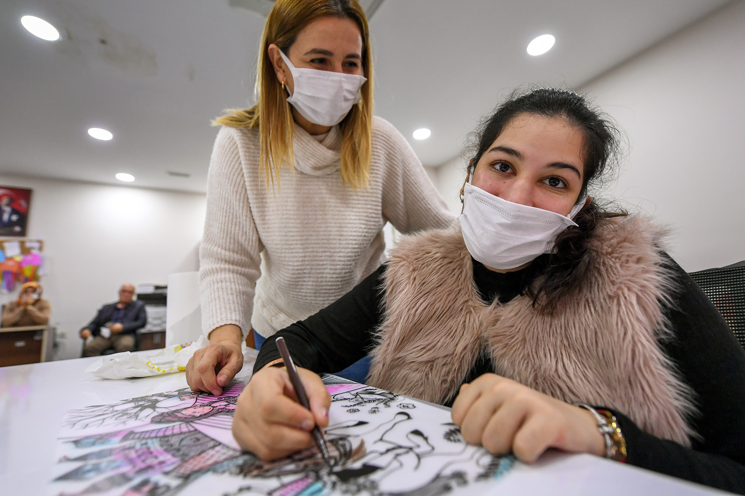 Mersin Büyükşehir Belediyesi Engelliler ve Sağlık Hizmetleri Dairesi’ne bağlı olarak 2020 yılında hayata geçirilen Mola Evi, birçok özel gereksinimli bireye olduğu gibi kas iskelet sistemi hastalığı olan serebral palsi yani beyin felci hastası 18 yaşındaki Elif Naz Kendir’e de yuva oldu. Daha 2 yıl önceye kadar annesi Fadile Kendir’e, “Ben niye arkadaşlarımla oturamıyorum? Anne benim niye arkadaşım yok?” sorularını soran Elif Naz, şimdi arkadaşlarıyla birlikte Mola Evi’nde uzman eğitmenler eşliğinde gerçekleştirilen çeşitli aktivitelere katılıyor. Kişisel el becerileri ve okuma yazma konusunda da epey yol kat eden Elif Naz’ın neşesi ailesine de nefes oldu.