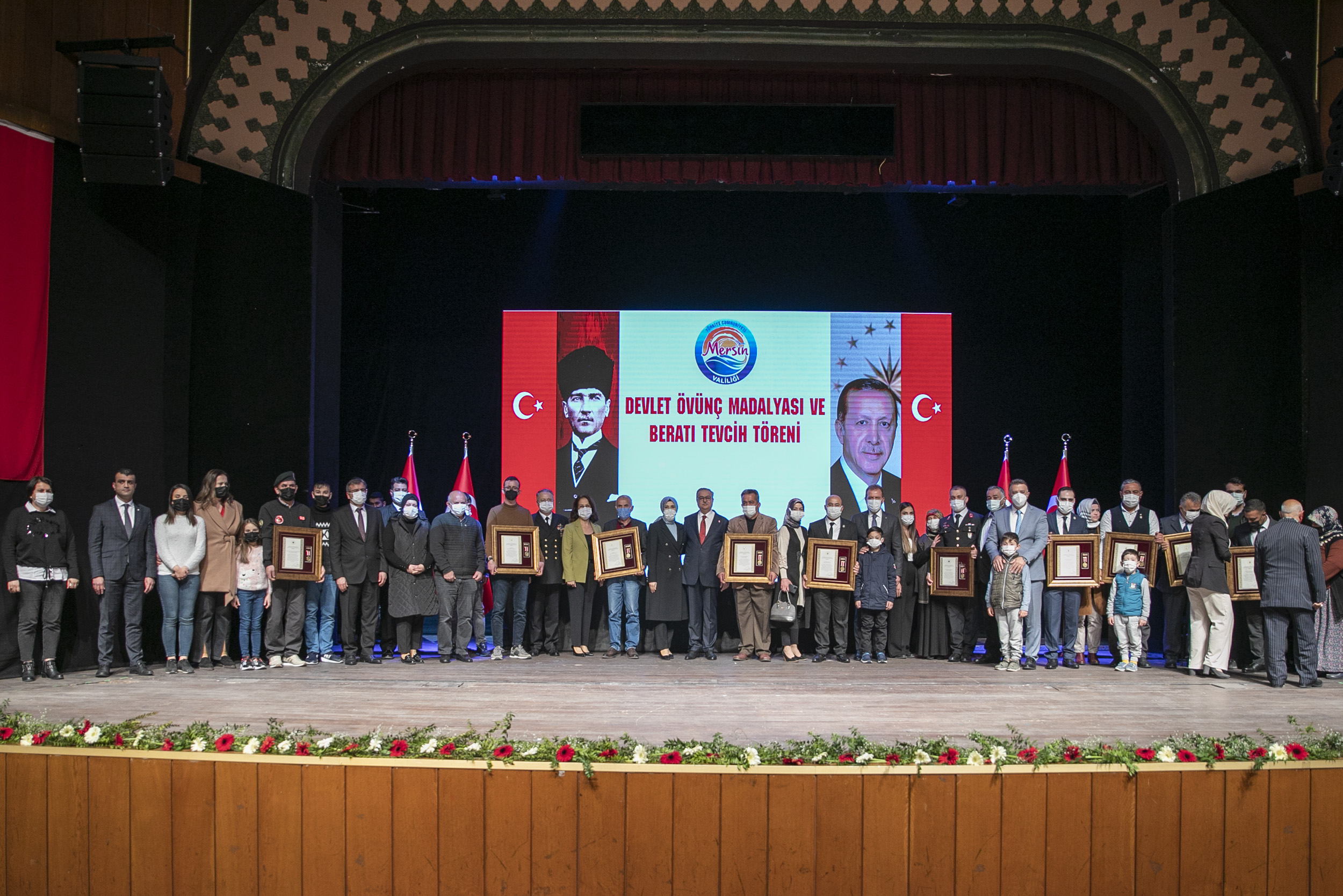 Kültür Merkezi’nde düzenlenen törene; Mersin Valisi Ali İhsan Su ve eşi Zeliha Su, Akdeniz Bölge ve Garnizon Komutanı Tuğamiral Fuat Gedik ve eşi Oya Gedik, Mersin Büyükşehir Belediye Başkanı Vahap Seçer, kent protokolü ve şehit yakınları ile gaziler katıldı.