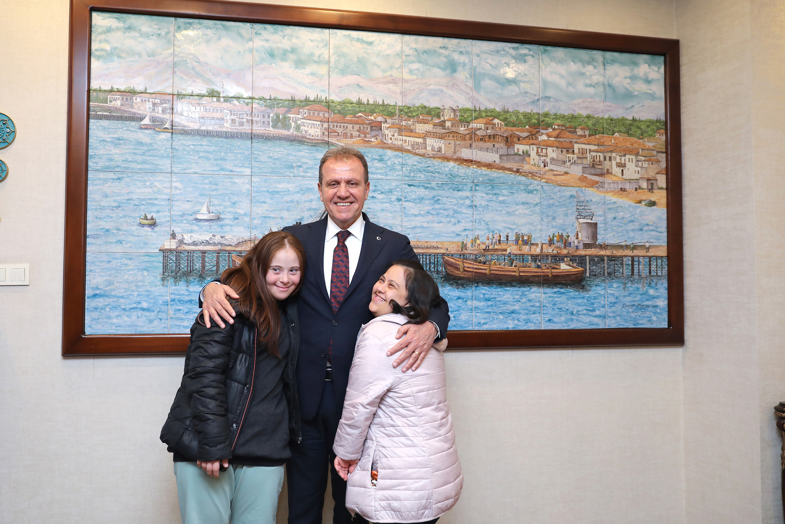 Toroslar Şifa Hatun Mesleki ve Teknik Anadolu Lisesi öğrencileri ve okul yöneticileri ile Mersin Büyükşehir Belediyesi Engelsiz Yaşam Merkezi’nde eğitim gören down sendromlu bireyler, 21 Mart Down Sendromu Farkındalık Günü dolayısıyla Mersin Büyükşehir Belediye Başkanı Vahap Seçer’i ziyaret etti. Başkan Seçer, lise öğrencilerinin geliştirdiği proje ile birlikte ellerine renkli çoraplar giyerek farkındalık yarattı.