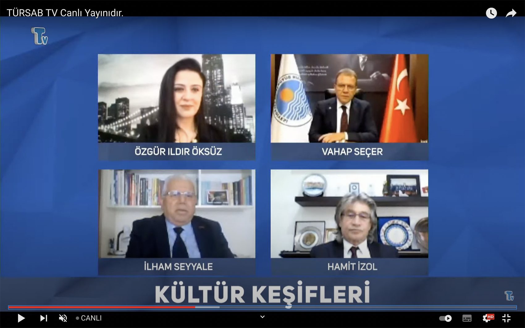 Mersin Büyükşehir Belediye Başkanı Vahap Seçer ve Mersin Turizm İşletmecileri Dernek Başkanı Hamit İzol, TÜRSAB TV’de TÜRSAB Kültür Turizmi İhtisas Başkan Yardımcıları Özgür Ildır Öksüz ve N. İlham Seyyale’nin sunumlarıyla yayınlanan “Kültür Keşifleri” programının canlı yayın konuğu oldu. Başkan Seçer, Mersin’in tarihi ve kültürel zenginliklerini anlattığı yayında Mersin’in turizm kenti olması için hayata geçirdikleri çalışmalara da değindi. Turizmin gelişmesinde yerel yönetimlerin tek başına yeterli olmadığını vurgulayan Seçer, “Turizmin Mersin’de de gelişebilmesi için hükümetin gündeminde olması lazım” dedi.