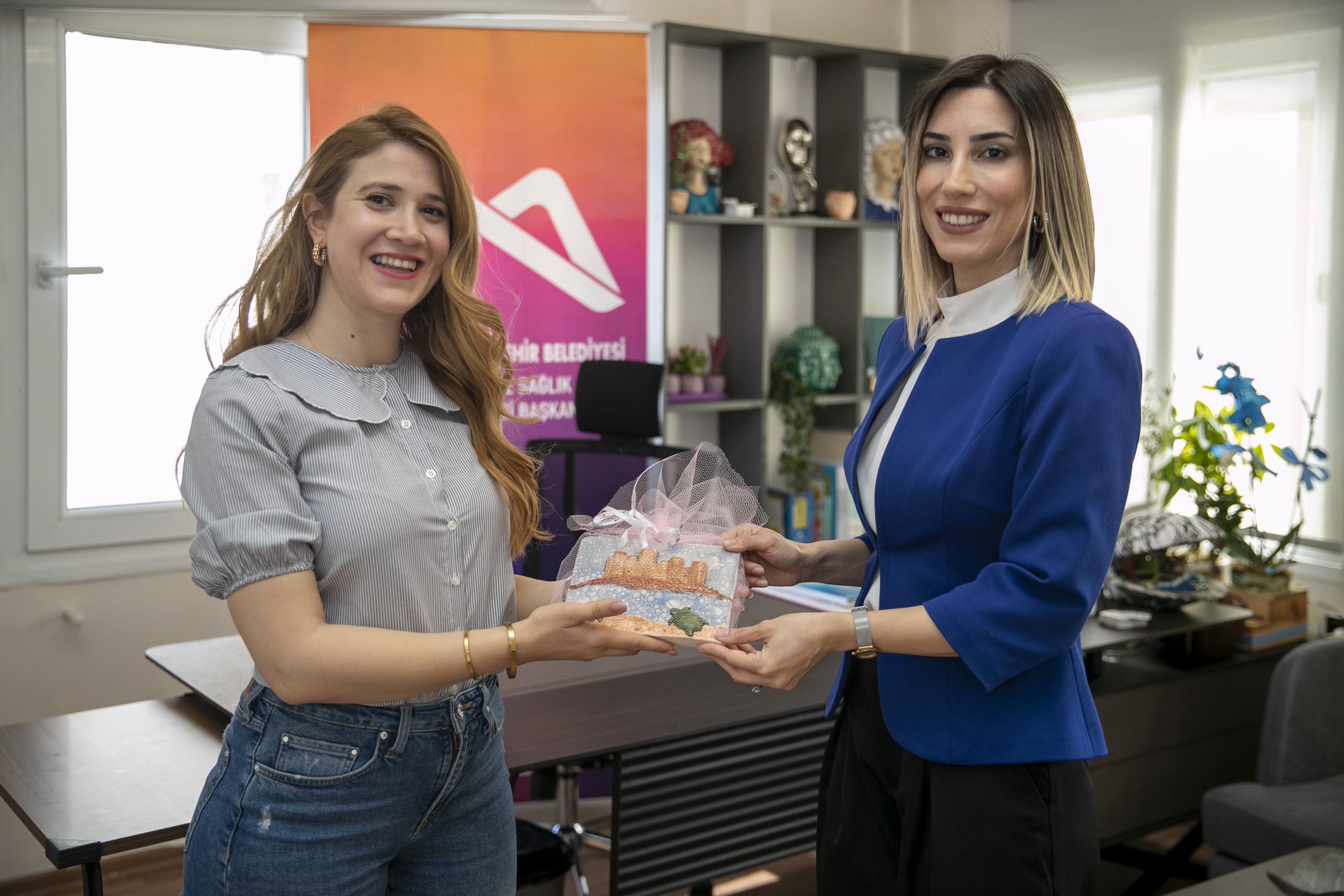 Programın sonunda Büyükşehir Belediyesi Engelliler ve Sağlık Hizmetleri Dairesi’nde görevli fizyoterapist Bilge Yıldırım, Uzm. Dr. Ceren Söğüt Direk’e özel çocukların yaptığı el işi süs eşyasını hediye etti.