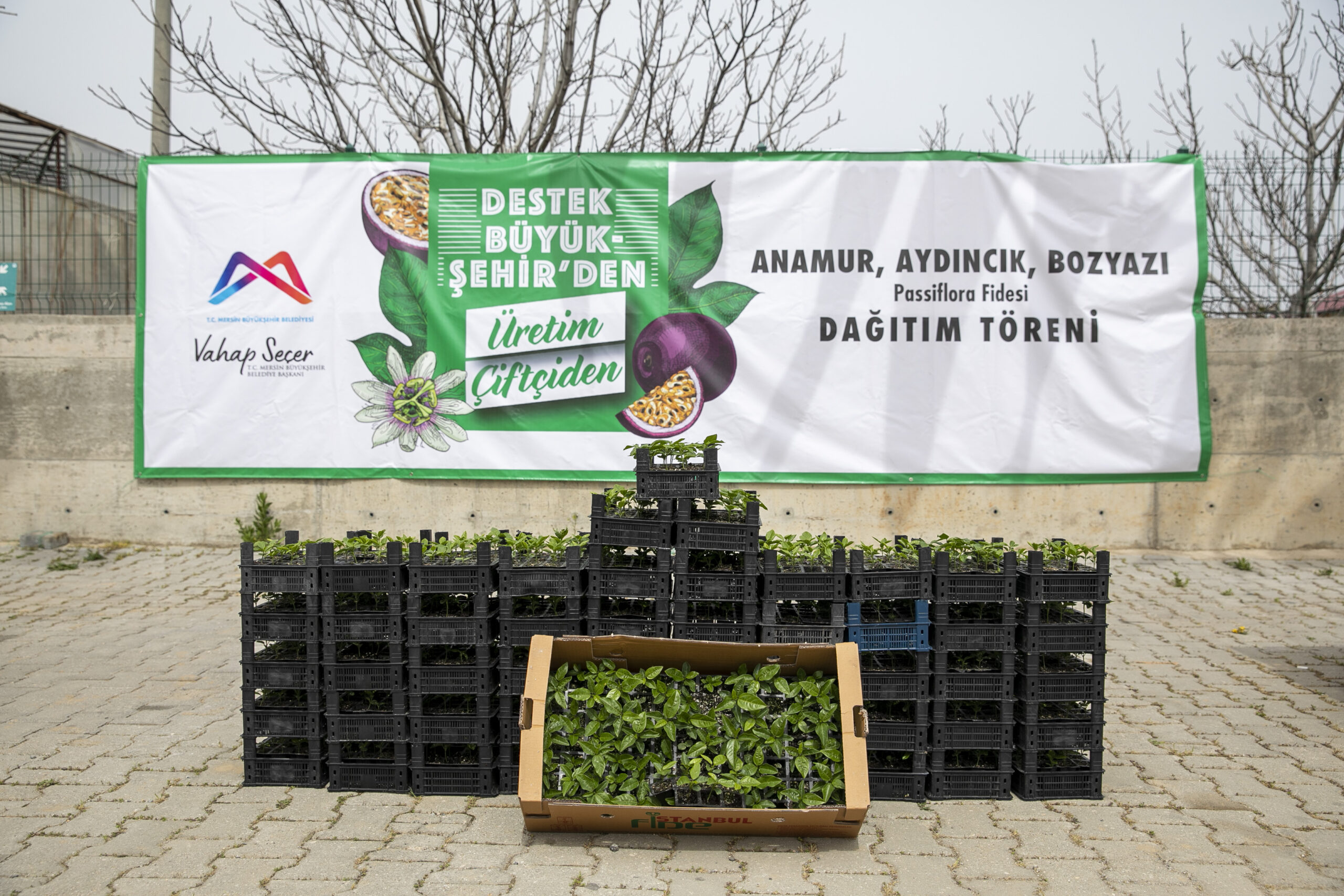 Mersin Büyükşehir Belediyesi Tarımsal ve Veteriner Hizmetleri Dairesi tarafından “Passiflora Fidesi Dağıtım Projesi” adıyla küçük ölçekli üreticiler için yeni bir destek hayata geçirildi. Bu yıl 6 ilçeden 59 üreticiye verilecek 7 bin 375 passiflora fidesinin 6 bin 500 adedi, Anamur’da düzenlenen dağıtım töreninde 3 ilçedeki 52 üreticiye teslim edildi. Fidelerini teslim alan üreticiler ile kooperatif arasında alım garanti sözleşmesi de imzalandı.