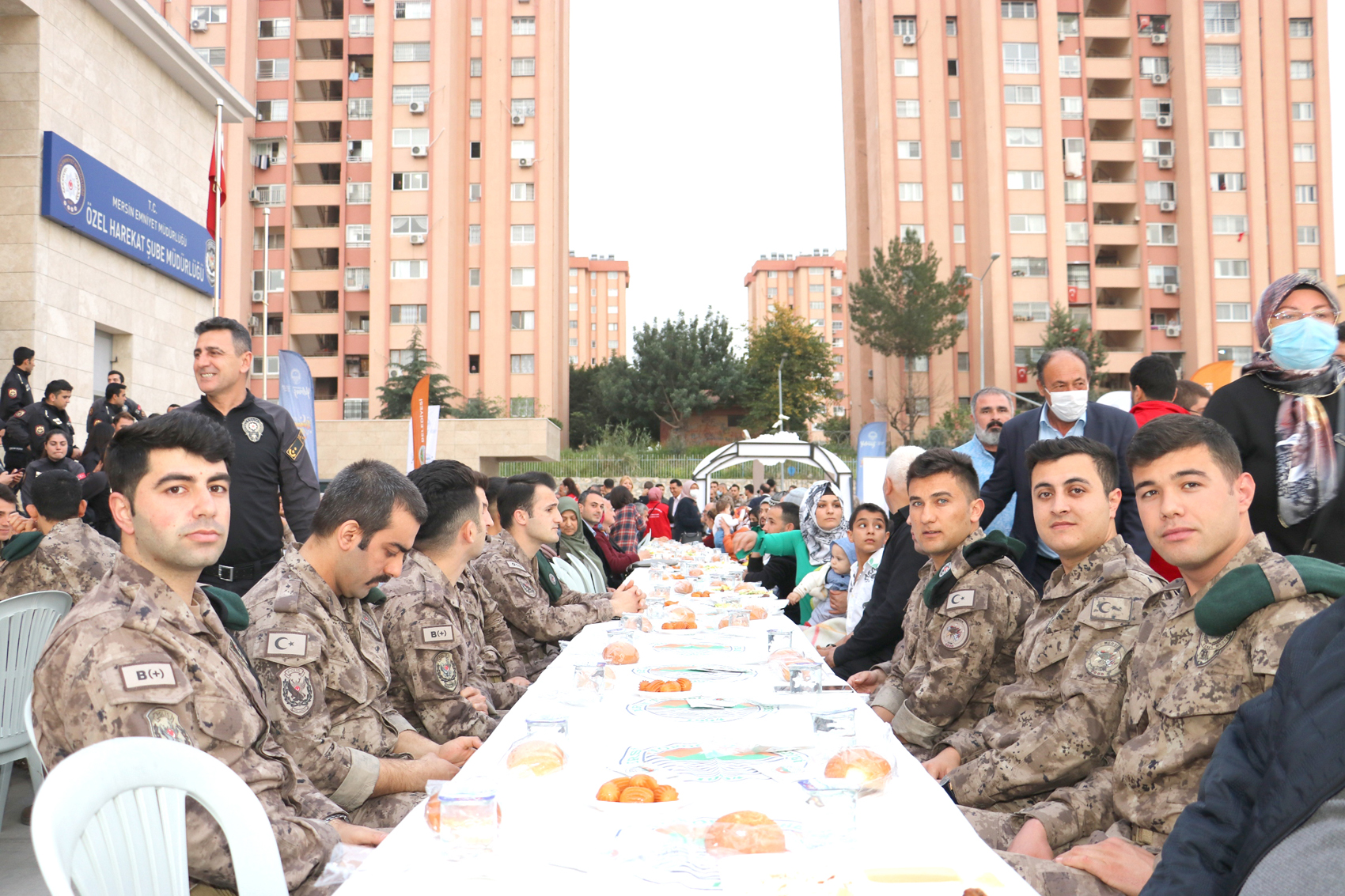 İlçede bulunan Özel Harekat Şube Müdürlüğü’nün bahçesinde kurulan iftar sofrası, yoğun ilgi gördü.
