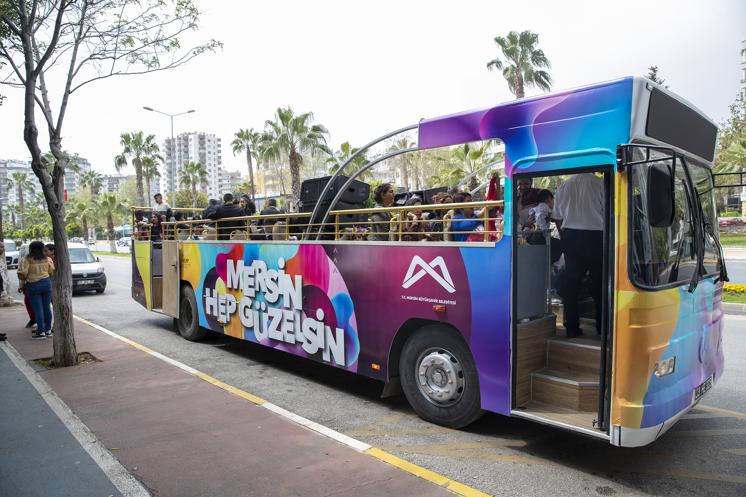 Mersin’de yoğun olarak Akdeniz ilçesi Turgutreis Mahallesi’nde yaşayan Roman vatandaşlar, Büyükşehir Belediyesi Kültür ve Sosyal İşler Dairesi’nin organizasyonuyla kent turu attı. Üstü açık otobüslere binen Romanlar, geleneksel kıyafetleri ve çaldıkları şarkılarla Mersin sokaklarını renklendirdi. Turgutreis Mahallesi’nden kalkan otobüsler Adnan Menderes Bulvarı’nı baştan sona turladı. Romanlar zaman zaman otobüsleri durdurup Kültür Park’ın çimlerinde dans etti. Çevredeki vatandaşlar ise söylenen şarkılara eşlik ederken, o dakikaları telefon kameralarıyla ölümsüzleştirdi.