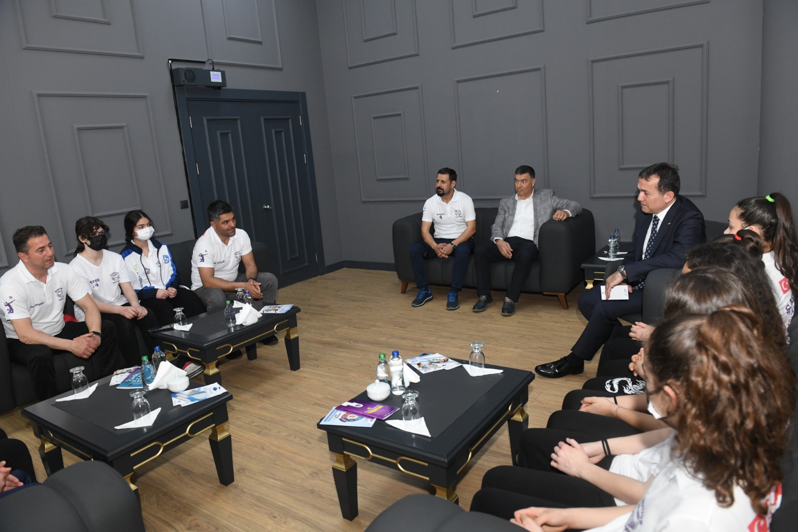 Mersin Yenişehir Belediyesinin desteğiyle Türkiye Okullar Arası Yıldız Kızlar Voleybol Şampiyonası’nda mücadele eden ve Türkiye şampiyonu olan Yenişehir Pirireis Ortaokulu oyuncuları Yenişehir Belediye Başkanı Abdullah Özyiğit’i ziyaret etti. Oyuncuları tebrik eden Başkan Özyiğit, Yenişehir Belediye Meclisinde aldıkları kararla başarılı sporcuları ödüllendirdiklerini ifade ederek, “Başarı sizden, destek bizden.” dedi. Türkiye Okullar Arası Yıldız Kızlar Voleybol Şampiyonası’nda tüm maçlarını kazanarak şampiyon olan Yenişehir Pirireis Ortaokulu voleybol takımı oyuncuları ve öğretmenleri kendilerine verdikleri destek dolayı Başkan Abdullah Özyiğit’e teşekkür ziyaretinde bulundu. Başkan Özyiğit, takımın büyük bir başarıya imza attığına ve asıl teşekkürü hak edenlerin oyuncular olduğuna dikkat çekti. Şampiyon kızların her birine 2 bin 692 TL’lik destek Başkan Özyiğit, “Sizlerle gurur duyuyoruz, inanıyorum ki gelecekte çok iyi yerlere geleceksiniz. Kentimizi ve ülkemizi en iyi şekilde temsil edeceksiniz. Biz de bugün olduğu gibi yarınlarda da yanınızda olacağız. Her birinizi tek tek tebrik ediyorum. Hem spor hayatınızda hem de eğitim hayatınızda size başarılar diliyorum.” dedi. Başkan Özyiğit, Yenişehir Belediyesi Meclisinde aldıkları kararla başarılı sporculara destek verdiklerini söyledi. Bu doğrultuda Yenişehir Belediyesi olarak şampiyon olan Yenişehir Pirireis Ortaokulu voleybol takımı oyuncularının her birine2 bin 692 TL’lik destekte bulunduklarını ifade etti. Başkan Özyiğit “Yenişehir, sportif altyapı imkânlarıyla Türkiye’nin en önemli ilçelerinden biri” Yenişehir Belediyesinin sağladığı olanaklar ve altyapı imkânlarıyla Yenişehirli gençlerin her branşta şampiyonluk hedeflediğini belirten Başkan Özyiğit, “Yenişehir, sportif altyapı imkânlarıyla Türkiye’nin en önemli ilçelerinden biri. Bu gelişiminin altında elbette ki Yenişehir Belediyesinin spora olan desteği ve vizyonu yatıyor. Çocuklarımızı ve gençlerimizi spora teşvik etmek için gayretle çalışıyoruz”diye konuştu. Yenişehir Belediyesi spor eğitimleriyle çocuk ve gençlerin yanında Yenişehir Belediyesi olarak tüm branşlara destek verdiklerini ve spor eğitimleriyle Yenişehirli çocukları geleceğe hazırladıklarını sözlerine ekleyen Başkan Abdullah Özyiğit, voleyboldan jimnastiğe, futboldan tenise kadar birçok alanda eğitim verdiklerini ve sportif mekânları halkın hizmetine sunduklarını kaydetti. Yenişehir Pirireis Ortaokulu beden eğitimi öğretmeni Ahmet Çavuşoğlu ise “ Başkanımıza çok teşekkür ediyoruz, biran olsun bizi yalnız bırakmadı ve hiçbir zaman geri çevirmedi. Şampiyonadayken de sürekli aradı, desteği gibi kalbinin de bizimle olduğunu hissettik. Bu bizim için çok büyük bir moral kaynağı oldu. Kendisine çok teşekkür ediyoruz” diye konuştu. Başkan Abdullah Özyiğit daha sonra Türkiye şampiyonu olan Nilsu, Öykü, Ceylin, Derinsu, Defne, Melis, Doğa, Yağmur, Ada, Lavin, Ceren ve Işılsu ile hatıra fotoğrafı çekti.