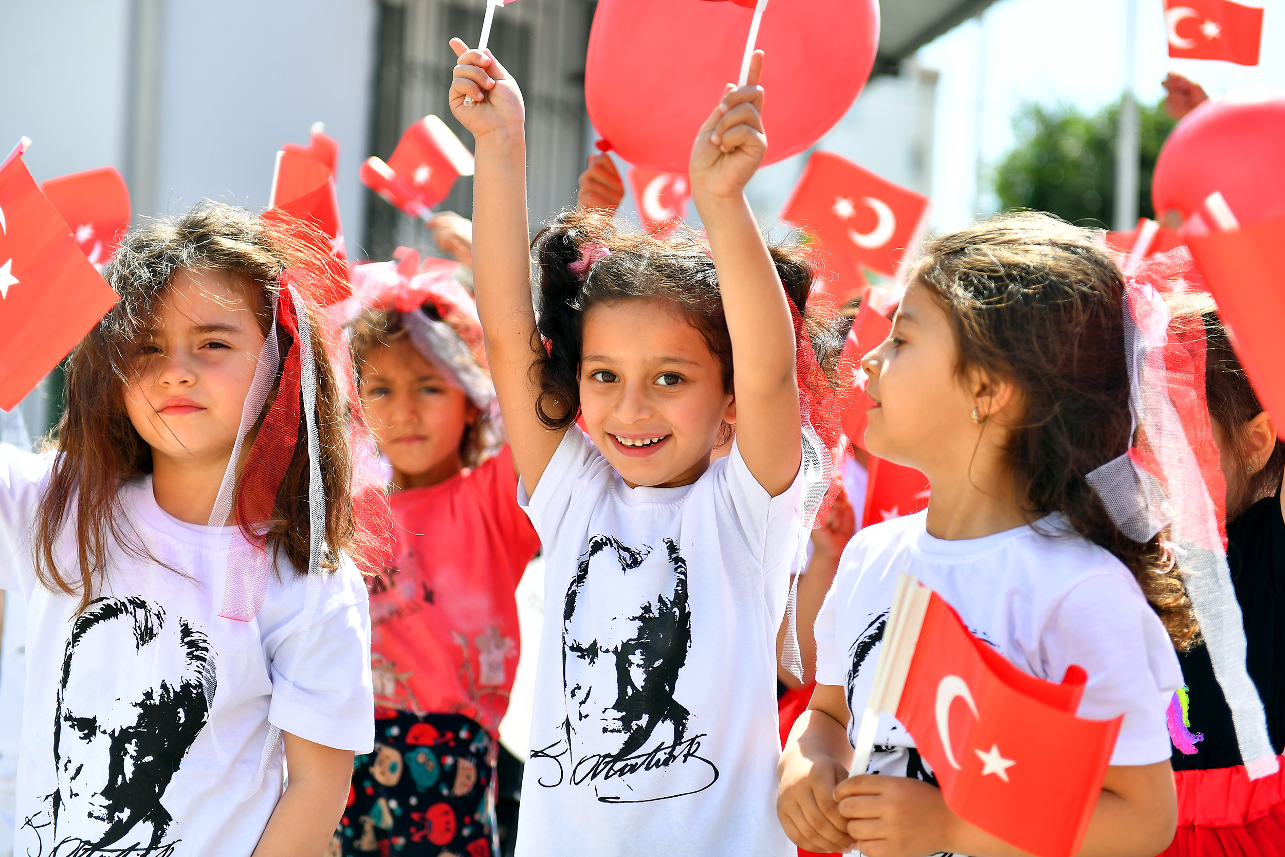 Kortej boyunca 23 Nisan coşkusuna yakışır şarkılar ve marşlar eşliğinde yürüyen çocuklar, daha sonra atölye önünde gösterilerini sergiledi. Şiirler okuyup, şarkılar söyleyen ve dans eden minikleri, aileleri de coşku ve heyecanla izledi.