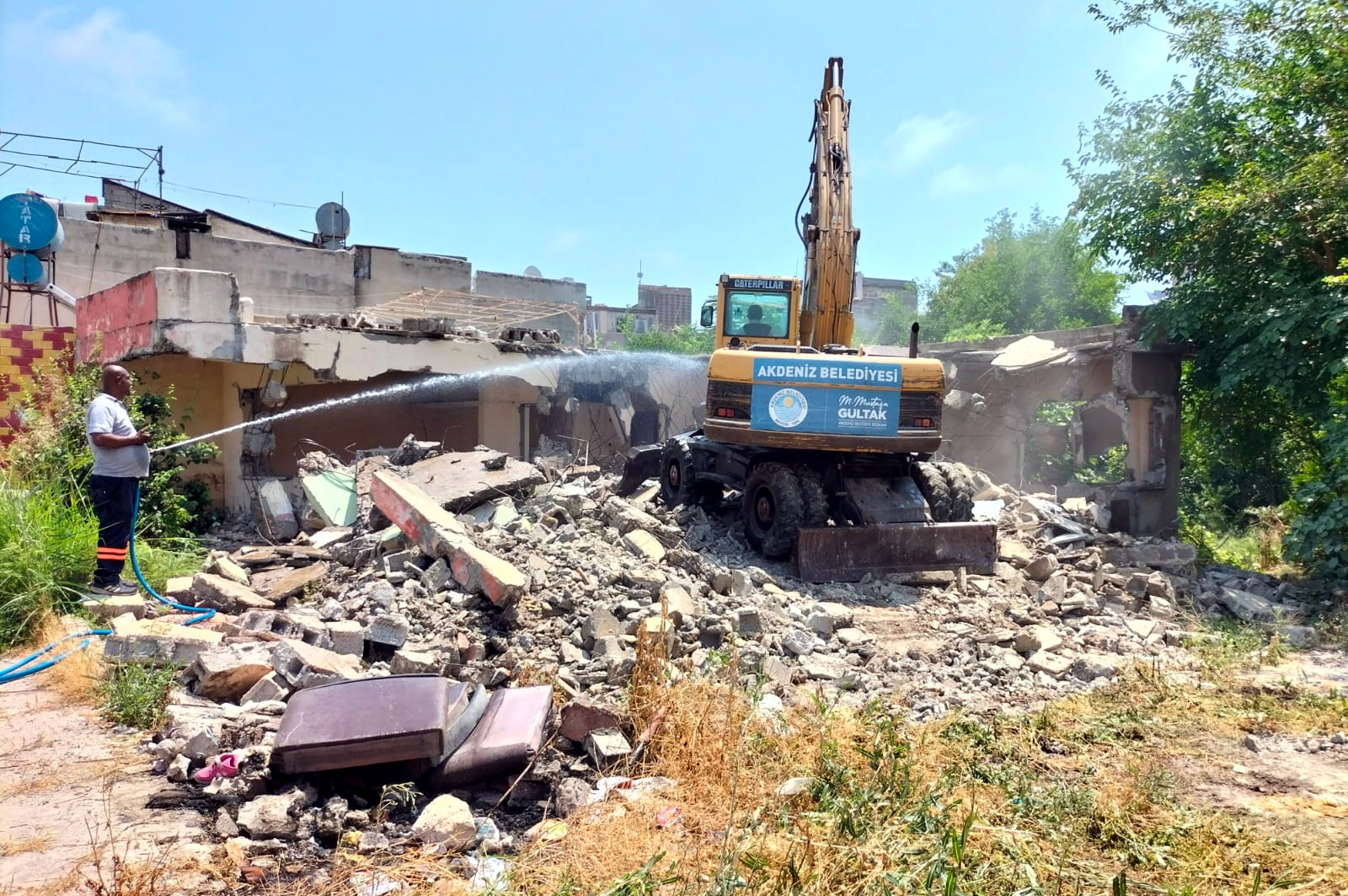 AKDENİZ’DE METRUK YAPILARLA MÜCADELE SÜRÜYOR