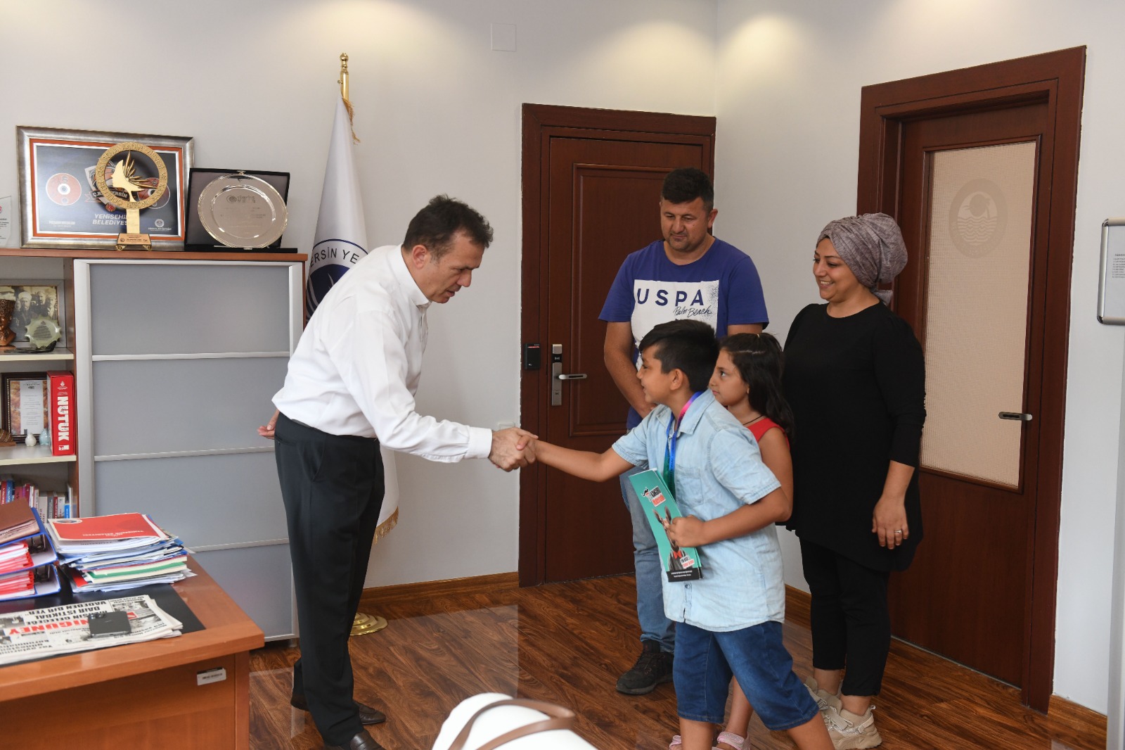Mersin Yenişehir’de bulunan Mersinli Ahmet İlkokulu 3’üncü sınıf öğrencisi 9 yaşındaki Yusuf Efe Erdem, Uluslararası Amerikan Matematik Olimpiyatları’nda büyük bir başarıya imza atarak, bronz madalya kazandı. Yusuf Efe mutluluğunu eğitim konusunda önemli çalışmalara imza atan Mersin Yenişehir Belediye Başkanı Abdullah Özyiğit ile paylaştı. Yusuf Efe ve ailesini makamında ağırlayan Başkan Özyiğit, “Yenişehirli çocuklar her alanda fark yaratmaya devam ediyor, Yusuf’un ve diğer tüm çocuklarımızın her zaman destekçisi olacağız.” dedi. Amerika’da bulunan Güney Illinois Üniversitesi(SIU)ve Singapur Uluslararası Matematik Yarışmaları Merkezi(SIMCC)tarafından düzenlenen Uluslararası Amerikan Matematik Olimpiyatları’na katılan 9 yaşındaki Yusuf Efe Erdem bronz madalya kazanma başarısı gösterdi. Yenişehir Belediye Başkanı Abdullah Özyiğit, Yusuf Efe Erdem ve ailesiyle bir araya gelerek, kendilerini tebrik etti. Başkan Özyiğit, “Çocuklarımızın potansiyelini ortaya çıkarmalı, onları doğru yönlendirmeli ve kendilerine imkân tanımalıyız.” Çocukların potansiyellerinin ortaya çıkarılması ve doğru yönlendirilmesi gerektiğini dile getiren Başkan Özyiğit, Yenişehir Belediyesi olarak bu anlayışla hareket ettiklerini vurgulayarak şunları söyledi: “Yusuf Efe’yi gönülden tebrik ediyorum, Yenişehirli çocuklar her alanda önemli başarılara imza atıyorlar. Bu yıl Türkiye Okullar Arası Yıldız Kızlar Voleybol Türkiye Şampiyonası’nda Belediyemizin desteğiyle mücadele eden Mersin Yenişehir Pirireis Ortaokulumuz şampiyon oldu. ÇBK Mersin Yenişehir Belediyesi kadın basketbol altyapımızdaki 7 kız çocuğumuz milli takımlara davet edildi. Geçtiğimiz yıl YKS’de Yenişehirli üç gencimiz Türkiye genelinde ilk 10’a girme başarısı göstermiş ve ilk kez aynı ilçeden üç öğrenci ilk 10’a girdi. Yusuf Efe’nin bu başarısı da bizi çok mutlu etti. İnanıyorum ki gelecekte güzel yerlere gelecek, çocuklarımızın potansiyeli var. Bu potansiyeli ortaya çıkarmalı, onları doğru yönlendirmeli ve kendilerine imkân tanımalıyız. Biz de Yenişehir Belediyesi olarak bu anlayışla çalışıyoruz.” Başkan Özyiğit, erken çocukluk eğitimi ve BETEM’e dikkat çekti Bilimsel temelli bir eğitimle çocukları geleceğe hazırladıklarını ifade eden Başkan Abdullah Özyiğit, “Türkiye’de bir ilke imza atarak hayata geçirdiğimiz Erken Çocukluk Gelişimi Projesi kapsamında kurduğumuz Beceri Temelli Eğitim Merkezimiz, BETEM’de tam olarak bunu yapıyoruz. Bireysel eğitimler vermememizin yanı sıra çocuklarımızın potansiyellerini de ortaya çıkarıyoruz. Çocuklarımızı gözlemliyor ve ilgi duyduğu alanı tespit ederek, buna yoğunlaşıyoruz. Marmara Üniversitesi bünyesindeki Marmara Aile Becerileri Eğitim Programı(MABEP)’nda görev yapan çok değerli hocalardan danışmanlık desteği alıyoruz. Yani bilimsel temelli bir eğitim programı ile çocuklarımızı geleceğe hazırlıyoruz. İnanıyorum ki Yenişehirli çocuklar gelecekte adından söz ettirecek önemli başarılara imza atacaklar.” diye konuştu. Başkan Özyiğit, son olarak Yusuf Efe’nin ailesini de tebrik etti. Yusuf Efe “ODTÜ’de okumak ve bilim insanı olmak istiyorum.” Matematik olimpiyatlarındaki başarısı ile ilgili konuşan Yusuf Efe ise “Sonuç beni çok mutlu etti, çok da zorlanmadım. Matematik çok eğlenceli, soruları çözmek oyun gibi geliyor. ODTÜ’de okumak ve bilim insanı olmak istiyorum.” diye konuştu. Hülya Erdem “Başkanımıza güveniyoruz, eğitim konusunda hayata geçirdiği çalışmaları biliyoruz” Yusuf Efe’nin annesi Hülya Erdem de “Yusuf Efe, bizi çok gururlandırdı, ilkokula başladığı günden bu yana çok istekli, biz de onu desteklemek istiyoruz. ‘Daha iyi nasıl yetiştirebiliriz, ona nasıl eğitim verebiliriz?’ diye düşünüyoruz. Yenişehir Belediye Başkanımız Abdullah Özyiğit ile de görüştük, her konuda yanımızda olacağını söyledi. Başkanımıza güveniyoruz, eğitim konusunda hayata geçirdiği çalışmaları biliyoruz” dedi.