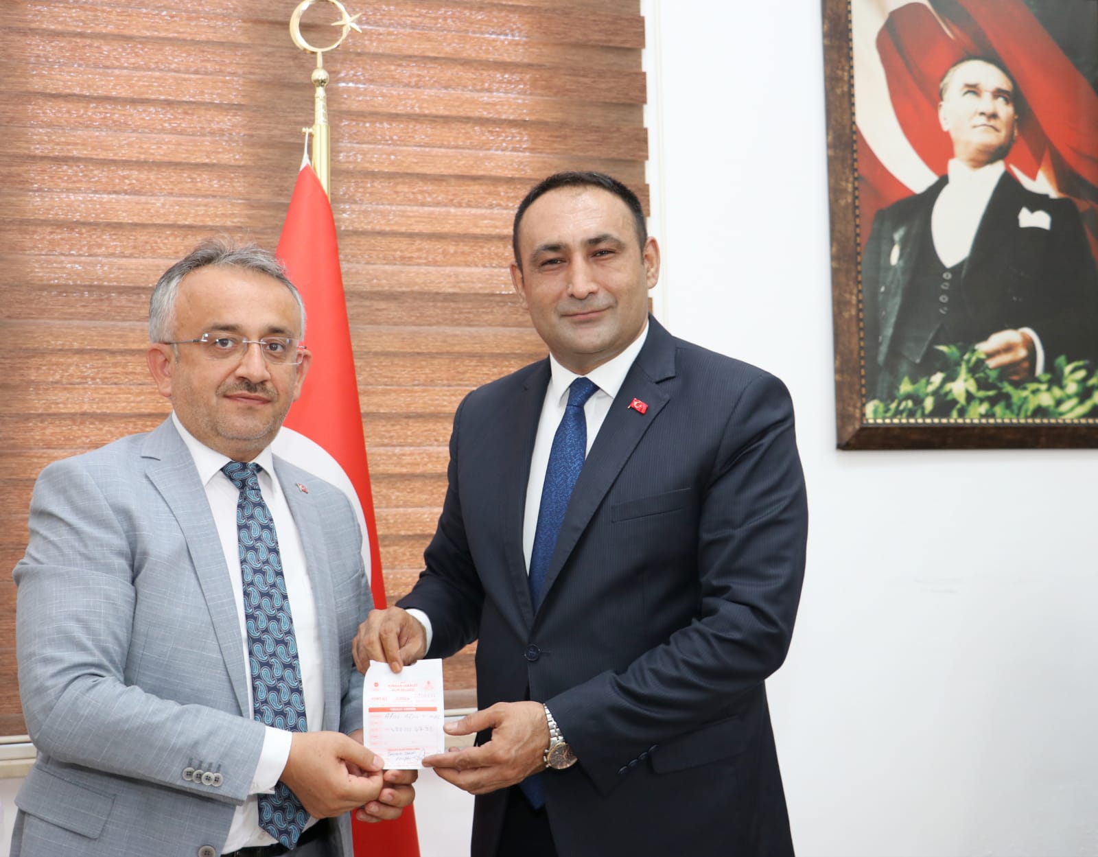 İlçe Müftüsü Bayram Danacı ise Belediye Başkanı Atsız Afşın Yılmaz’a desteklerinden dolayı teşekkür ederek, vekâletle kurban bağış makbuzunu takdim etti.