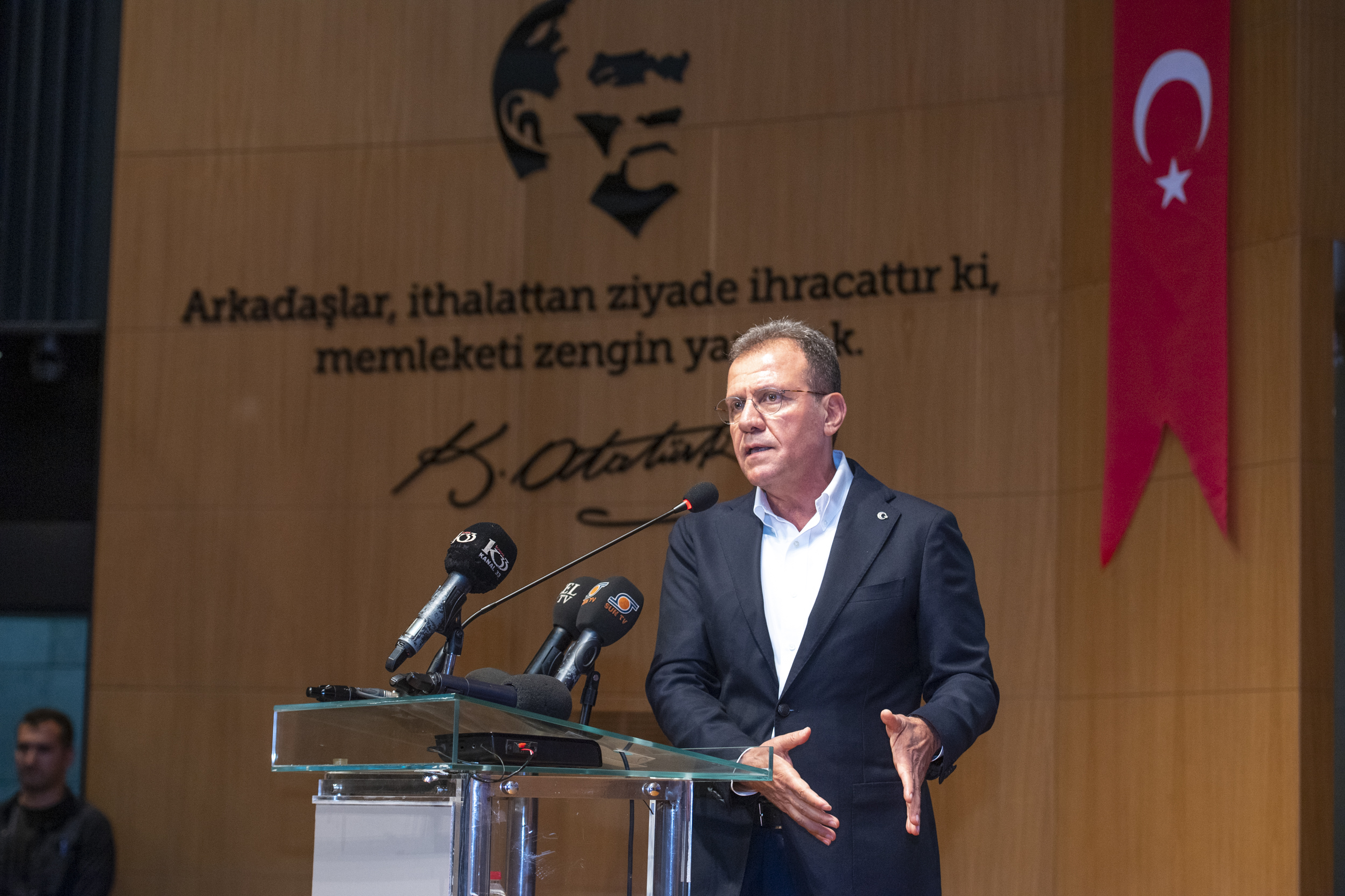 Rakamlara boğulmaya gerek olmadığını sözlerine ekleyen Başkan Seçer, “Sonuç itibarıyla tarım bölgesi olarak anılan bölgemde, narenciye, sebze, meyve bölgesi olarak anılan bölgemde, size çok ihtiyacımız var. Üretici ile dış pazar arasında önemli bir köprüsünüz. 55 milyon ton üretimin sadece Türkiye’de tüketilmesini düşünemeyiz. Bunun mutlaka ihraç edilmesi de lazım. İşte 2 milyon ton narenciye ihracatı var, ama 5 milyon ton da üretim var. İhracatın sıkıntıya uğradığı dönemlerde üretici perişan olur. Mutlaka bunun dış pazara açılması lazım. Ben belediye başkanıyım. İhracat kapılarında yaşanan zorlukları ya da uluslararası ilişkilerde siyasetle başlayan, ekonomiye kadar yansıyan ilişkileri düzeltmek elbette ki benim görev alanım değil, merkezi hükümetin görev alanıdır. Ama şunu belirtmek isterim ki; özellikle yeni dünya düzeninde, hani az önce dedim ya, ‘kendimizi güncellememiz gerekiyor.’ Eğer ki biz, ekonomik açıdan ya da sosyo-kültürel açıdan gelişmiş ülkelerle yarışacak durumda gayret sarf etmezsek, bizim başarılı olma şansımız yok” ifadelerini kullandı.