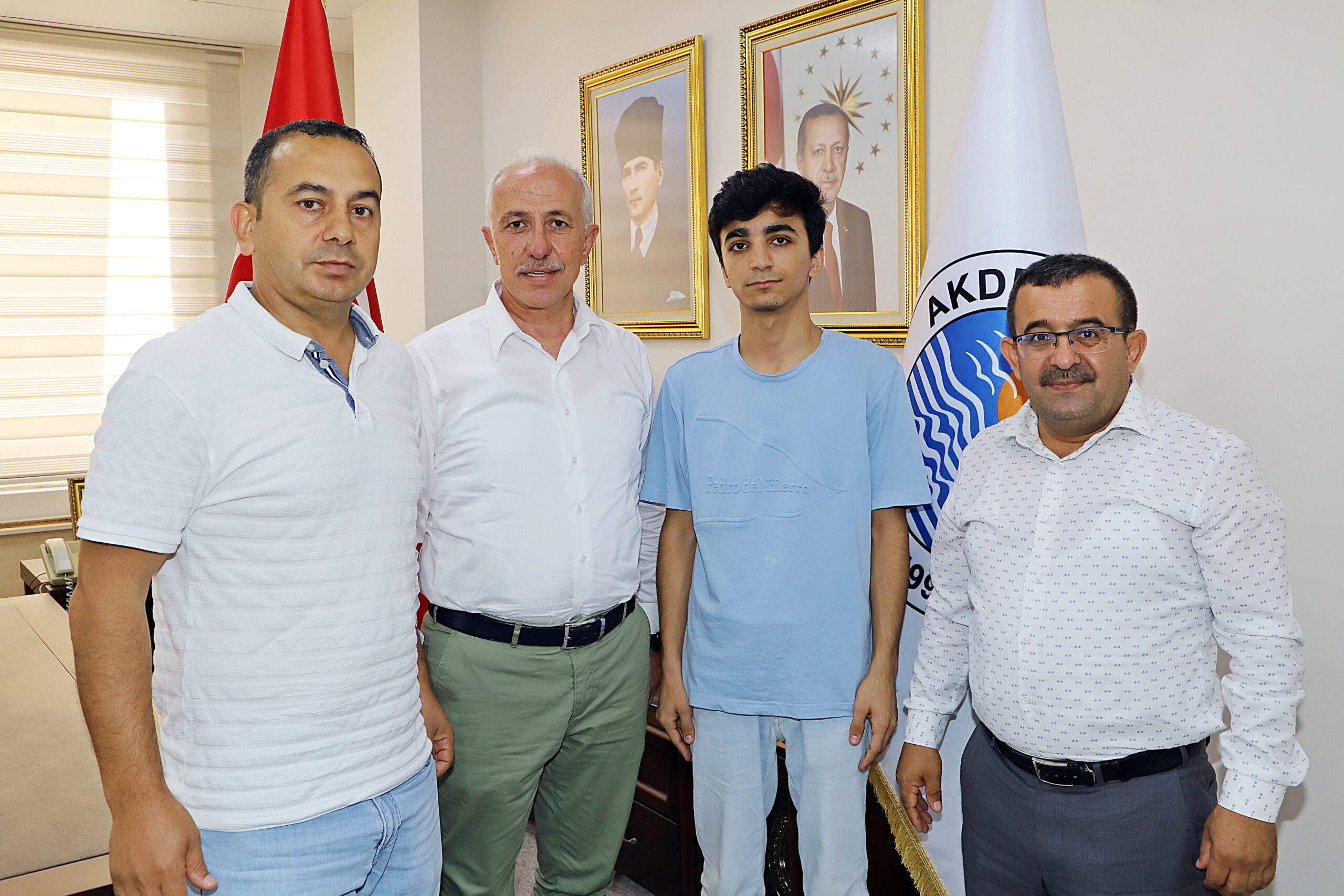 Akdeniz Belediyesi, gençlerin eğitimine destek veriyor, bu destek de başarı getiriyor. Yükseköğretim Kurumları Sınavı’nda (YKS) çektiği 543 puanla Türkiye sıralamasına giren, bu puanıyla Akdeniz ilçesinde de sıralamada birinci olan Deniz Barçatayın, yaşadığı sevinç ve heyecanı paylaşmak, ayrıca kendisine bu imkânı sağlayan Akdeniz Belediye Başkanı M. Mustafa Gültak’a teşekkür etmek için belediyeyi ziyaret etti. Ziyarete, 75’inci Yıl Fen Lisesi Okul Müdürü Kenan Ayvar da katıldı.