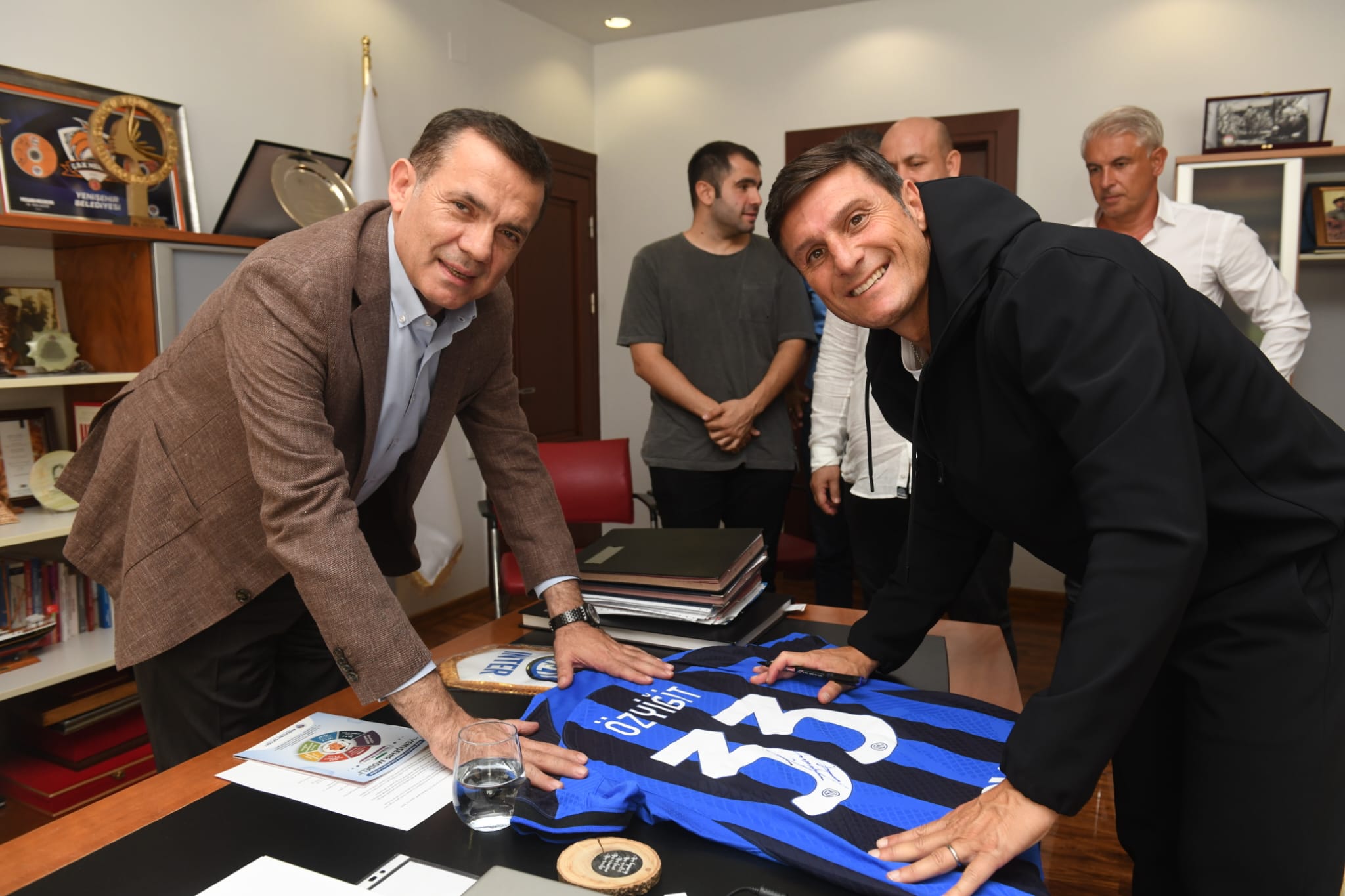 Mersin’e gelen dünya futbolunun efsane isimlerinden Javier Zanetti, Yenişehir Belediye Başkanı Abdullah Özyiğit’i de ziyaret etti. Inter Academy Türkiye lansmanına katılmak üzere Mersin’e gelen Javier Zanetti, ayrıca Yenişehir Belediyesinin de destekleriyle düzenlenecek bir etkinlikte Mersinli çocuklarla buluşacak. İtalya’nın en büyük futbol kulüplerinden olan İnter’in başkan yardımcılığı görevini de yürüten Arjantinli efsane futbolcu, Inter Academy Türkiye’nin Yenişehir’de bulunan tesislerini de gezecek. Javier Zanetti, programı kapsamında Inter Pazarlama Müdürü Barbara Biggi, Inter Academy Teknik Direktörü Marco Monti, Inter Basın Sorumlusu Federica Sala, Uluslararası Etkinlik Uzmanı Stefano Borghi ve Inter antrenörlerinden Valerio Ringoli ile birlikte Yenişehir Belediye Başkanı Abdullah Özyiğit’i ziyaret etti. Ziyarette Inter Academy Türkiye Yönetici Ortağı Hüseyin Kılavuz ve ÇBK Mersin Yenişehir Belediyesi kadın basketbol takımı Asbaşkanı Ali Adalıoğlu da yer aldı. Yenişehir Belediyesi, Zanetti’yi çocuklarla buluşturacak Zanetti,Yenişehir Belediyesi ve Inter Academy Türkiye iş birliğiyle 20 Eylül Salı günü saat 09.00’da Mersin Stadyumu’nda çocuklar ve sevenleriyle bir araya gelecek. Zanetti’yi Yenişehir Belediyesinde ağırlayan Belediye Başkanı Abdullah Özyiğit, “Zanetti gibi bir futbol efsanesini Mersin’de çocuklarımızla buluşturmak çok önemli. Çocuklarımızla tanışacak ve bu futbol oynayan bir çocuk için büyük bir motivasyon kaynağı olacak. Kendisini kentimizde ağırlamaktan dolayı çok mutluyuz.” dedi. Zanetti “Beni Yenişehirli çocuklar karşıladı, bu beni çok duygulandırdı” Mersin’de olmaktan dolayı çok mutlu olduğunu dile getiren Javier Zanetti ise “ Burada olmaktan dolayı çok mutluyum. Spora ve futbola desteğinizden dolayı teşekkür ediyorum. Çocuklar için hazırladığımız bir proje var. Ve bununla yakından ilgileniyoruz. Bugün havalimanında beni Yenişehirli çocuklar karşıladı, bu beni çok duygulandırdı ve mutlu etti. Herkese çok teşekkür ediyorum” diye konuştu.