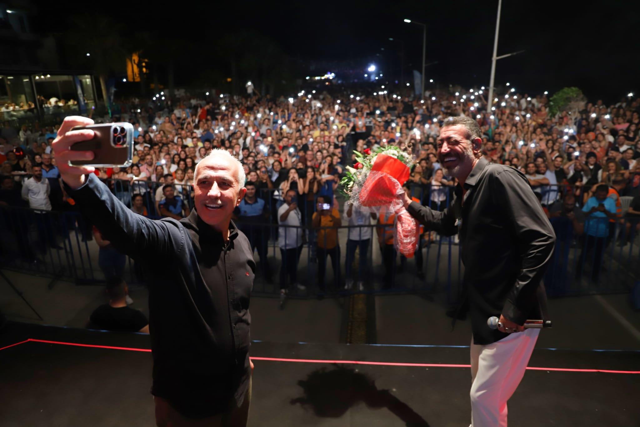 Akdeniz Belediyesi’nin bu yıl 3’üncüsünü düzenlediği ve her yaştan binlerce vatandaşın ziyaret ettiği Karaduvar Balık Festivali heyecanı, sevilen sanatçı Hakan Altun’un hayranları için verdiği konserle yerini coşkuya bıraktı. Lezzetin eğlence ile buluştuğu ve iki gün sürecek festivalin ilk gününde binlerce vatandaş, aileleri ve sevdikleriyle birlikte Karaduvar sahiline akın etti. Vatandaşlar, ikram edilen sardalya-ekmek ve şalgamdan almak için sahilde uzun kuyruklar oluşturdu. Sanatçıların müzik dinletileri, ödüllü bilgi yarışmaları, şampiyon sporcuların performansı, çocuk etkinlikleri, sihirbazlık gösterileri ve halk oyunları ile daha da renklenen geleneksel Karaduvar Balık Festivali’ne şehir dışından da birçok kişi katıldı. Karaduvar esnafı, festivalin yarattığı hareketlilikten memnun… Balık festivalinden duydukları memnuniyeti dile getiren Karaduvar Mahallesi esnafı ve alanda stant açarak satış yapan kadınlar ve gençler, etkinliğin; hem bölgenin tanıtımına hem de ekonomik canlılığına büyük katkı sağladığını belirterek Akdeniz Belediye Başkanı Gültak’ı takdir ve tebrik ettiler. Yoğun ilgi çeken etkinlik sayesinde mahallelerinde oluşan kalabalık sayesinde çok iyi satış yaparak kazanç elde ettiklerini söyleyen Karaduvar esnafı, balık festivalinin gelecek yıllarda da mutlaka devam etmesi gerektiğini dile getirdiler. Özellikle gençler ise hem festivali çok beğendiklerini belirtirken, Hakan Altun’un vereceği konseri de sabırsızlıkla beklediklerini ifade ettiler. Festival alanına insan akını, akşam saatlerinde daha da arttı Akşam saatlerinde düzenlenen sanatçı Hakan Altun’un konserini dinlemek için festivalin organize edildiği Karaduvar sahiline binlerce vatandaşın akını aralıksız devam etti. Kalabalık nedeniyle festivalin düzenlendiği alanda yer bulamayan yüzlerce kişi, deniz kenarında kumların üzerine oturup şarkılara eşlik etti. Kimi mahalle sakinleri ise evlerinin damına çıkarak sanatçının şarkılarını dinlerken, Akdeniz Belediye Başkanı M. Mustafa Gültak da konsere eşi Behiye Gültak ile birlikte katıldı. Binlerce kişi konseri dinlemek için alanı doldurdu Konserin sonuna doğru sahneye çıkarak Karaduvar Balık Festivali’ne katılımı nedeniyle Hakan Altun ve ekibine teşekkür eden Başkan Mustafa Gültak, sanatçıya çiçek takdim etti. Sanatçı Hakan Altun da festivale katılıyor olmaktan mutluluk duyduğunu söyledi, davet nedeniyle Başkana teşekkür etti. Başkan Mustafa Gültak, ardından Hakan Altun ve konseri dinlemek için sahili dolduran binlerce vatandaşı kendi çektiği selfi ile ölümsüzleştirdi. Hayranlarının ısrarı üzerine uzun süre sahnede kalan sevilen sanatçı, duygu dolu şarkılarını söyleyip hayranlarına unutulmaz dakikalar yaşattı. Akdeniz Belediyesi’nin, Kültür ve Turizm Bakanlığı’nın da katkılarıyla bu yıl 3’üncüsünü organize ettiği, lezzetin ve eğlencenin bir arada olduğu Karaduvar Balık Festivali coşkusu bugün de devam edecek.
