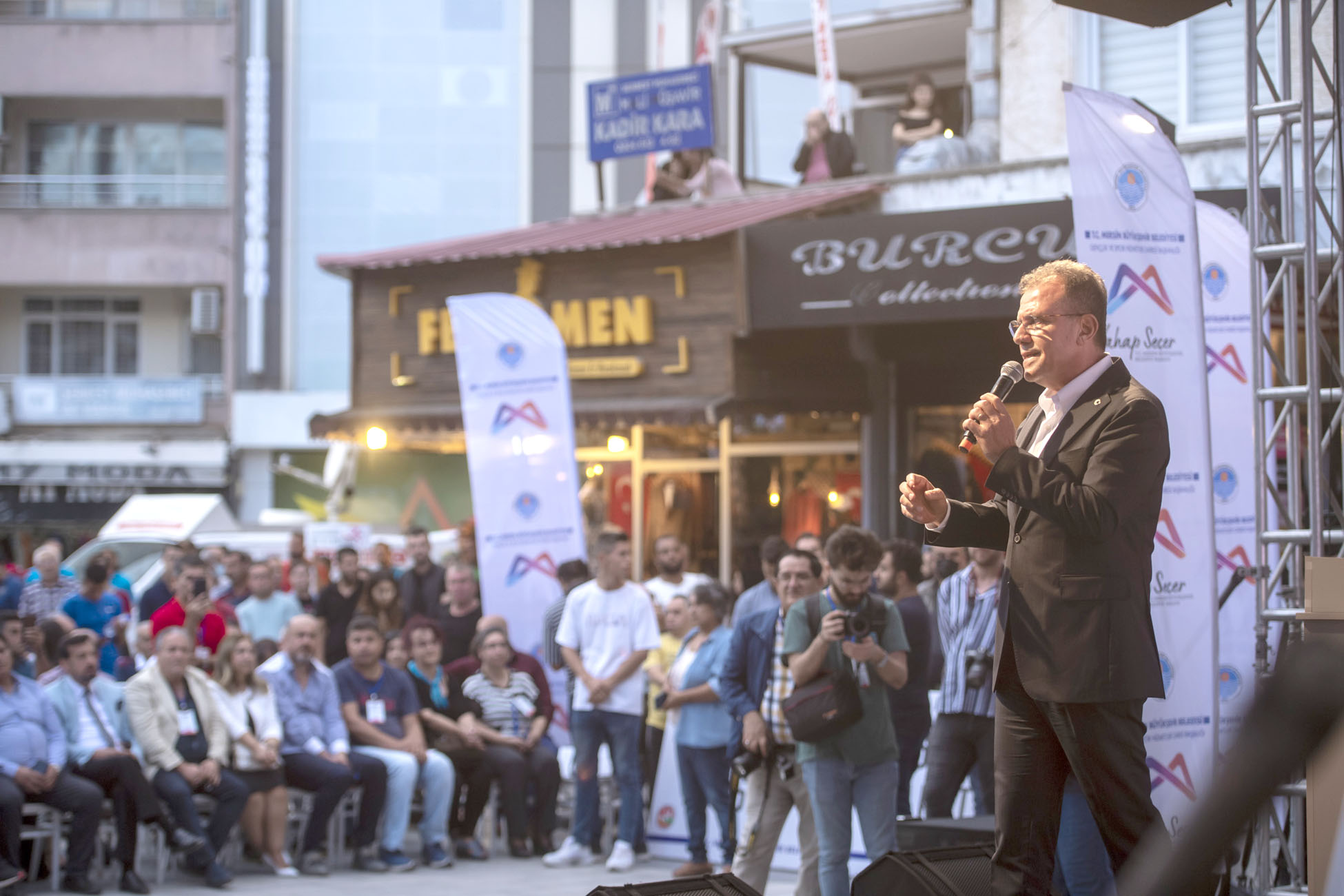 Konuşmasına, 3,5 yıldır gece gündüz, iyi niyetle, titizlikle, vatan aşkıyla ve insan sevgisiyle çalıştıklarını belirterek başlayan Başkan Seçer, “Sizlerin tercihi ile sizlerin güveni ile biz bu makamlara ulaştık. Sizler istemediğiniz noktada, biz o makamları demokratik bir şekilde yeni seçilen arkadaşımıza devrederiz. Bizim demokrasi anlayışımız bu. Fakat, bizim altımızdan bu koltukları alıp götürmek çok da kolay değil. Onun için seçimlerde rakiplerimizin işleri zor” ifadelerine yer verdi.