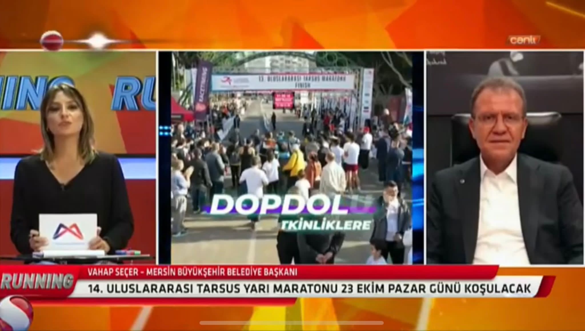 Mersin Büyükşehir Belediye Başkanı Vahap Seçer, Sports TV’de Running adlı programın canlı yayın konuğu oldu. Hafta sonu koşulacak olan 14. Uluslararası Tarsus Yarı Maratonu hakkında konuşan Başkan Seçer, son derece renkli bir etkinliğe imza atıldığını söyledi. Başkan Seçer, “Yarı maratonda 11 ülkeden 40 yabancı ve 390 kendi vatandaşımız olmak üzere toplam 430 sporcu yarışacak. Pazar günü aynı zamanda, bir de halk koşumuz var. O koşu için de 3 bin 684 vatandaşımız kayıt yaptırmış. Hatta bu koşu için kayıtlar, Pazar günü koşunun yapılacağı saate kadar devam edecek” dedi.