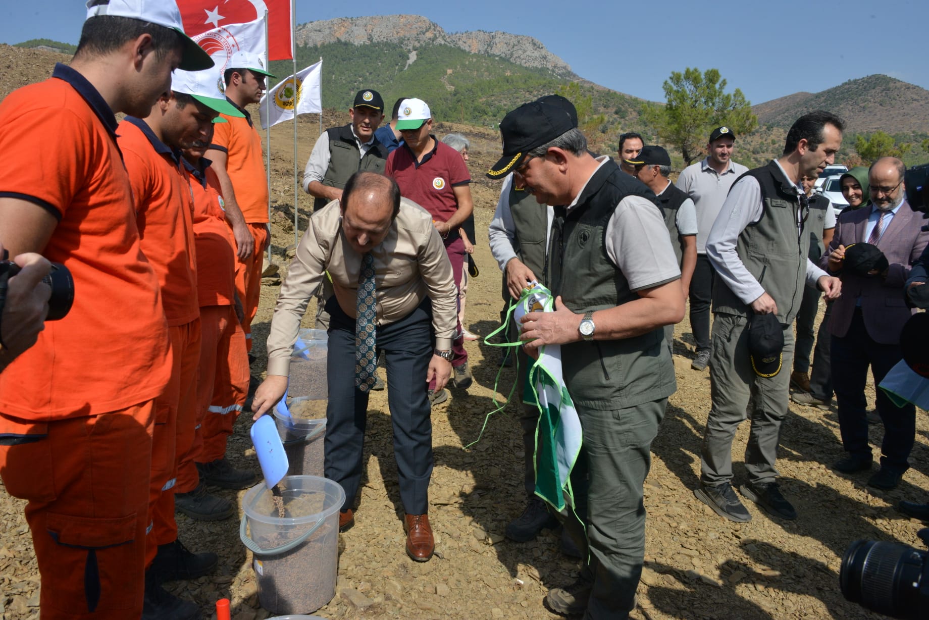 Mersin Gülnar ve Silifke ilçelerinde 2 ay önce meydana gelen havadan ve karadan müdahale ile 29 saatte söndürülen orman yangınlarında yüzlerce hektar alan zarar gördü. Yangında yok olan ormanlık alanlar ile gençleştirme sahaları için Mersin Orman Bölge Müdürlüğü tarafından tüm ilçelerdeki şefliklerin katılımı ile çalışma yapıldı. Yapılan çalışmada tonlarca kozalak orman işçileri tarafından işlenip yaklaşık 450 milyon adet tohum elde edildi. Elde edilen tohumların büyük bir kısmı yangında yok olan bölgelerde toprakla buluşturulmaya başlandı. İlk tohumları ise Vali Ali Hamza Pehlivan, Mersin Orman Bölge Müdürü Mustafa Yalçın beraberinde orman işçileri ve diğer protokol üyelerinin katılımı ile toprağa ekti. Mersin Valisi Sayın Ali Hamza Pehlivan’a, Mersin Orman Bölge Müdürü Mustafa Yalçın, Bölge Müdür Yardımcısı Mehmet Fulin, Silvikültür Şube Müdürü Dr. Hakan Keleş, Ağaçlandırma Şube Müdürü Rıza Güleç, Basın ve İletişi Şube Müdürü Abdurrahman Sezer, Silifke Orman İşletme Müdürü, İşletme Müdür Yardımcısı, İşletme Şefleri, Orman Muhafaza Memurları ve İşçiler eşlik etti. 7 Eylül 2022 tarihinde çıkan orman yangınının Gülnar Orman İşletme Müdürlüğü sınırlarında başlayıp daha sonra Silifke Orman İşletme Müdürlüğü sınırlarında devam eden yaklaşık 2000 ha alanın zarar gördüğü alanlara 547 ton kozalaktan elde edilen kızılçam tohumları atıldı. Mersin Valisi Pehlivan, “Yaklaşık 2000 ha alanda meydana gelen orman yangının da devletimiz tüm kurumlarıyla seferber edilmiştir. Yangın 29 saatin ardından tamamen söndürülerek bu alanda, Mersin Orman Bölge Müdürü Yalçın ve tüm personelleri ile sahada çalışmalara devam etmektedir. Alanda yanmayan kızılçam ağaçları ekolojik denge ağacı olarak bırakılacak tamamen yananlar ekonomiye kazandırılması için kesilecektir. Toprak hazırlığı yapılan alanlarda tohum ekimi ve fidan dikim çalışmaları yapılarak alan ormanlaştırılacaktır.” dedi.
