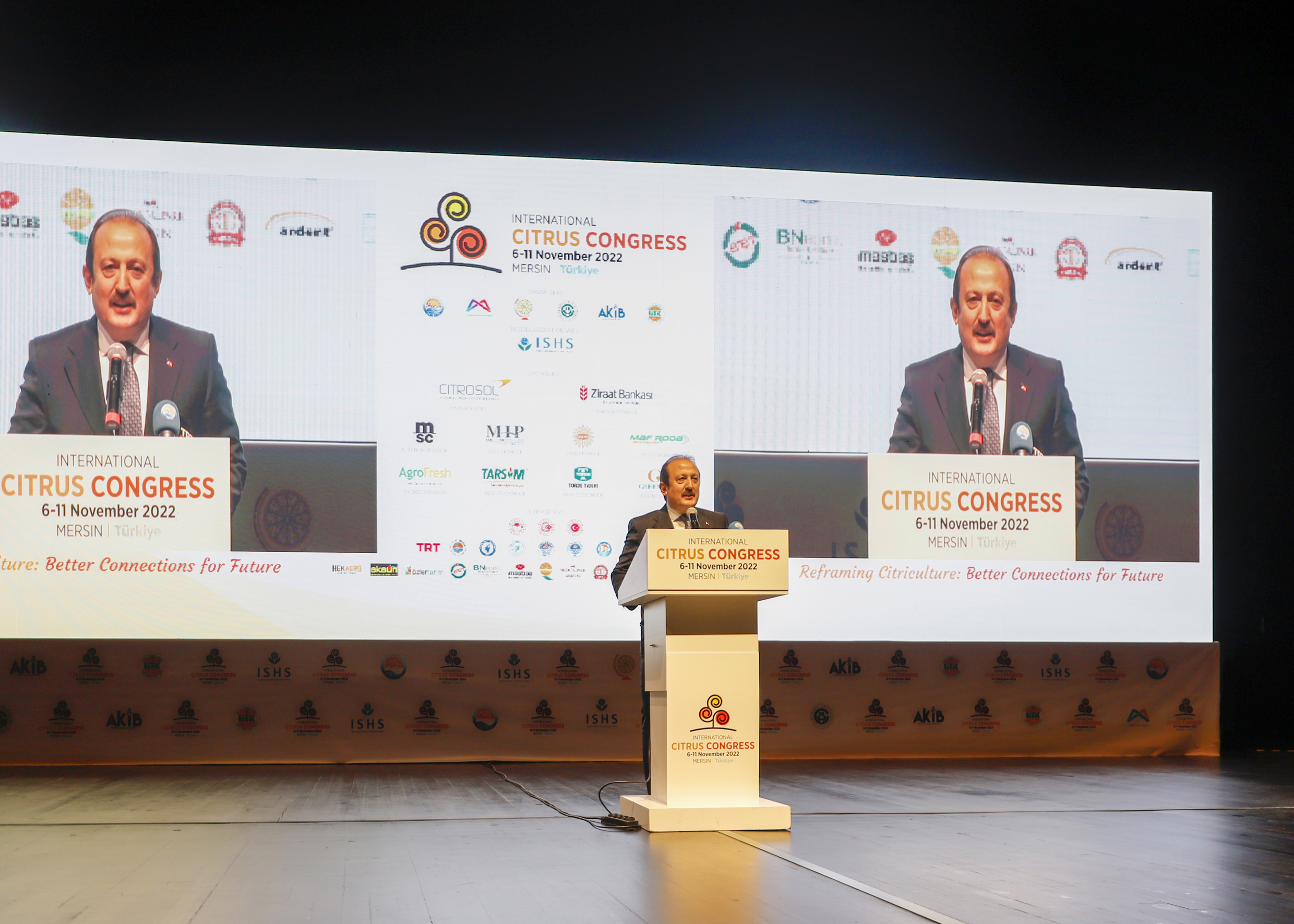 Dünyanın farklı yerlerinde gerçekleştirilen ve 2022 yılında, 14. sü ülkemizde ilk kez Mersin’de düzenlenen Uluslararası Turunçgil Konresi’nin açılışı; Tarım ve Orman Bakanımız Sayın Prof. Dr. Vahit KİRİŞÇİ başkanlığında, Mersin Valimiz Sayın Ali Hamza PEHLİVAN, Eski Hazine ve Maliye Bakanı Sayın Lütfi ELVAN ve milletvekillerimizin teşrifleriyle Yenişehir Atatürk Kültür Merkezi’nde yapılan törenle gerçekleşti.