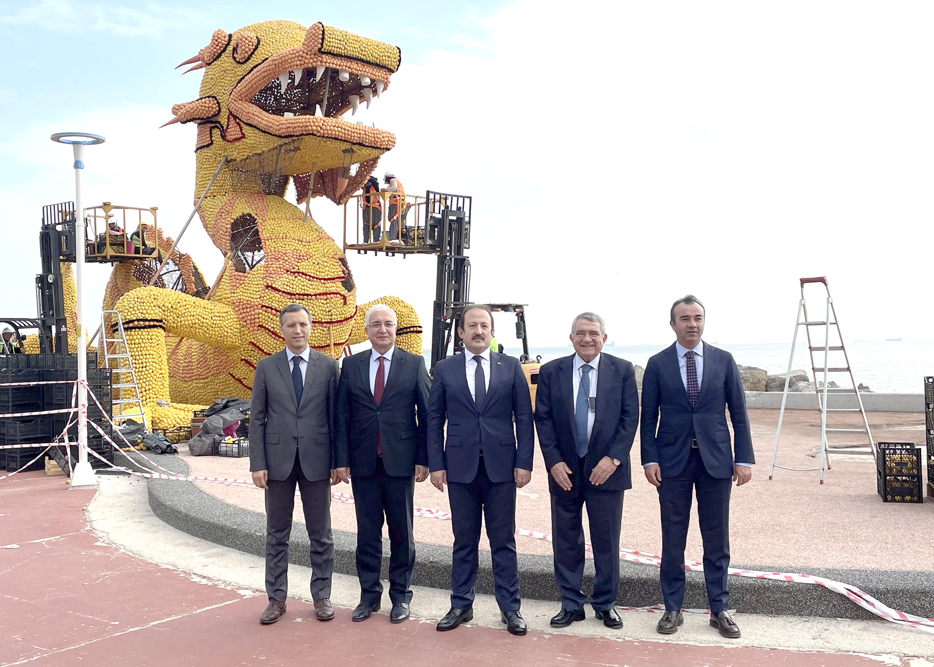 Festival kapsamında görücüye çıkan ejderha, balina, ahtapot, denizaltı, helikopter, maymun, uçak ve tren gibi figürlerin süslenmesinde canlı meyvelerin kullanıldığını anımsatan Vali Pehlivan, “Bu çok nadir, ülkemizde örneği olmayan bir uygulama. Burada kullanılan limon, greyfurt, mandalina ve portakallar kesinlikle ziyan edilmiyor. Bunlar vatandaşlarımıza dağıtılıyor. Şuanda da 100 ton civarında meyve kullanımı gerçekleşmiş. Kesinlikle bunlar ziyan edilmiyor, vatandaşlarımıza dağıtımı sağlanıyor, festivalin de bir hediyesi oluyor” şeklinde konuştu.