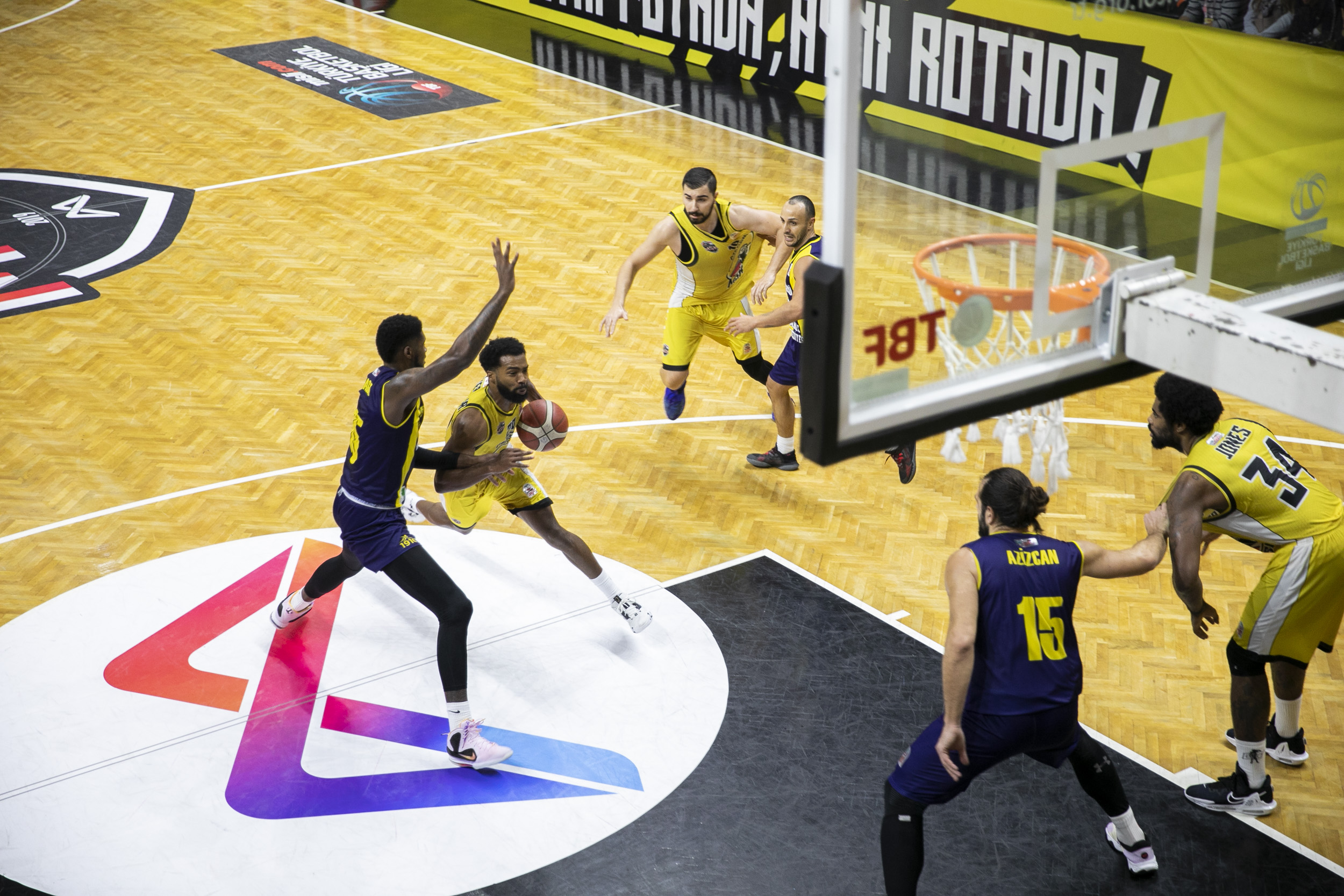 İkinci periyoda istekli ve tempolu başlayan temsilcimiz, rakibine karşı etkili savunma yaparken, hücumda da aradığı sayıları bulmaya başladı ve farkı 3 sayıya kadar indirdi. Bu dakikadan sonra her iki takım da karşılıklı hücumlardan eli boş dönerken, özellikle Jones’un kritik top kayıpları sonucu skor üstünlüğünü yakalayamayan temsilcimiz, ilk yarıyı 28-32 mağlup kapadı.