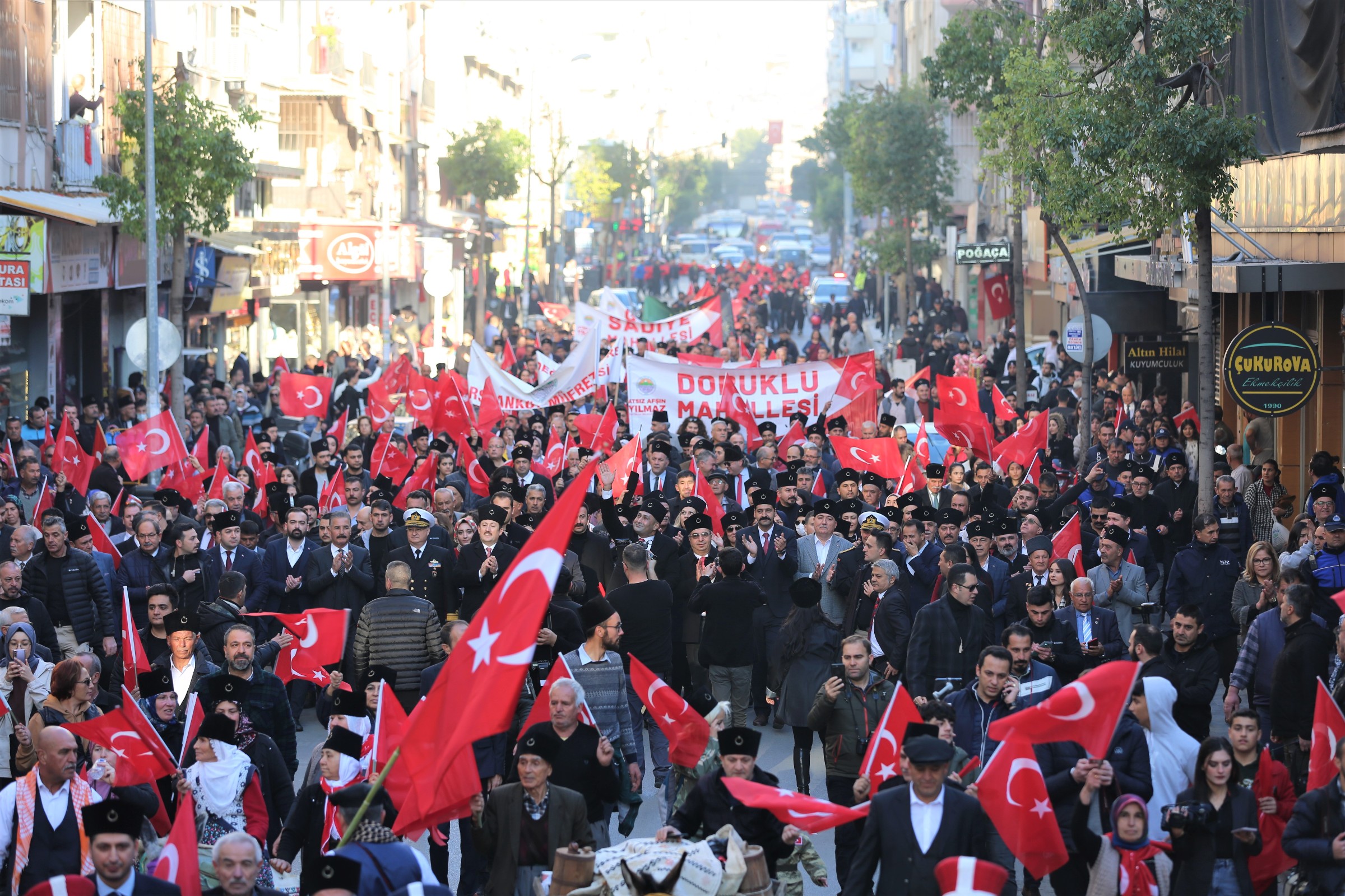 Kuvayi Milliye Caddesi, Eski Devlet Hastanesi Kavşağı, Metropol Kavşağı, Fasih Kayabalı Caddesi, Çakmak Caddesi, Tren Garı, Kurtuluş Kavşağı ve Sahil Yolu güzergâhından Cumhuriyet Meydanı’na kadar süren geleneksel yürüyüşte kalabalık, yol boyunca dev Türk Bayrağı taşıdı.